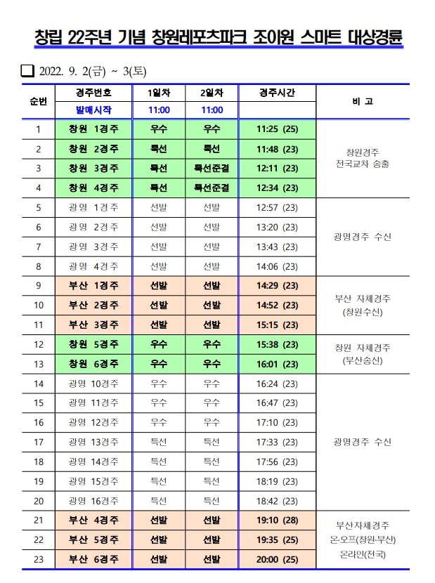 | 창원 제36회차 조이원 스마트 대상경륜 대진방식 및 경주운영(시간표) 안내 | |
