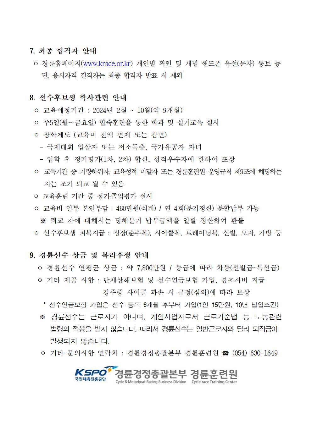 | 첨부파일 | 제29기 경륜선수후보생 모집 공고문 및 소정양식.hwp(48KB) |