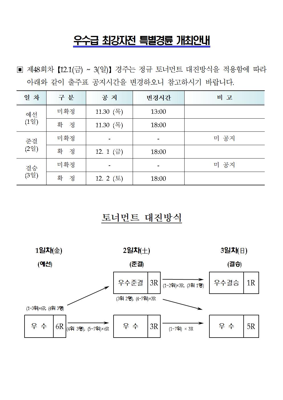| 창원 제48회차 우수급 최강자전 특별경륜 경주시간표 안내[12.1(금)~12.3(일)] | |