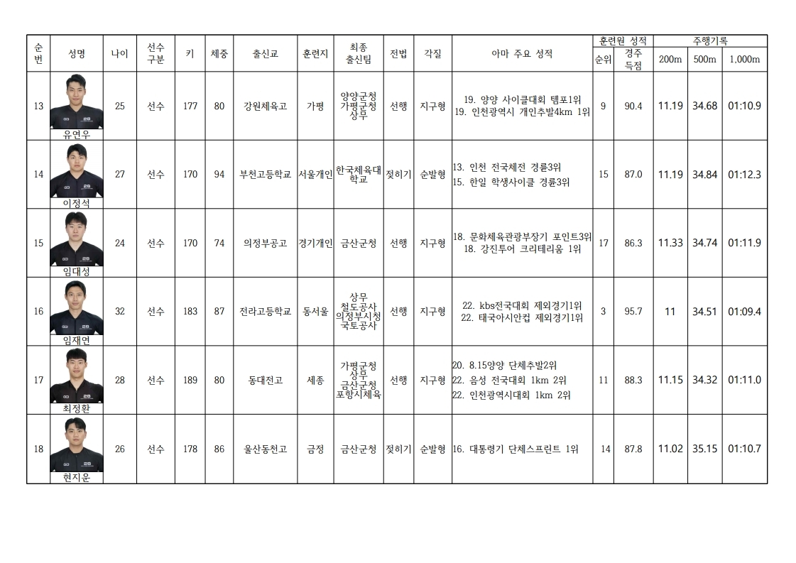 | 2023년 제28기 신인선수 프로필 안내 | |