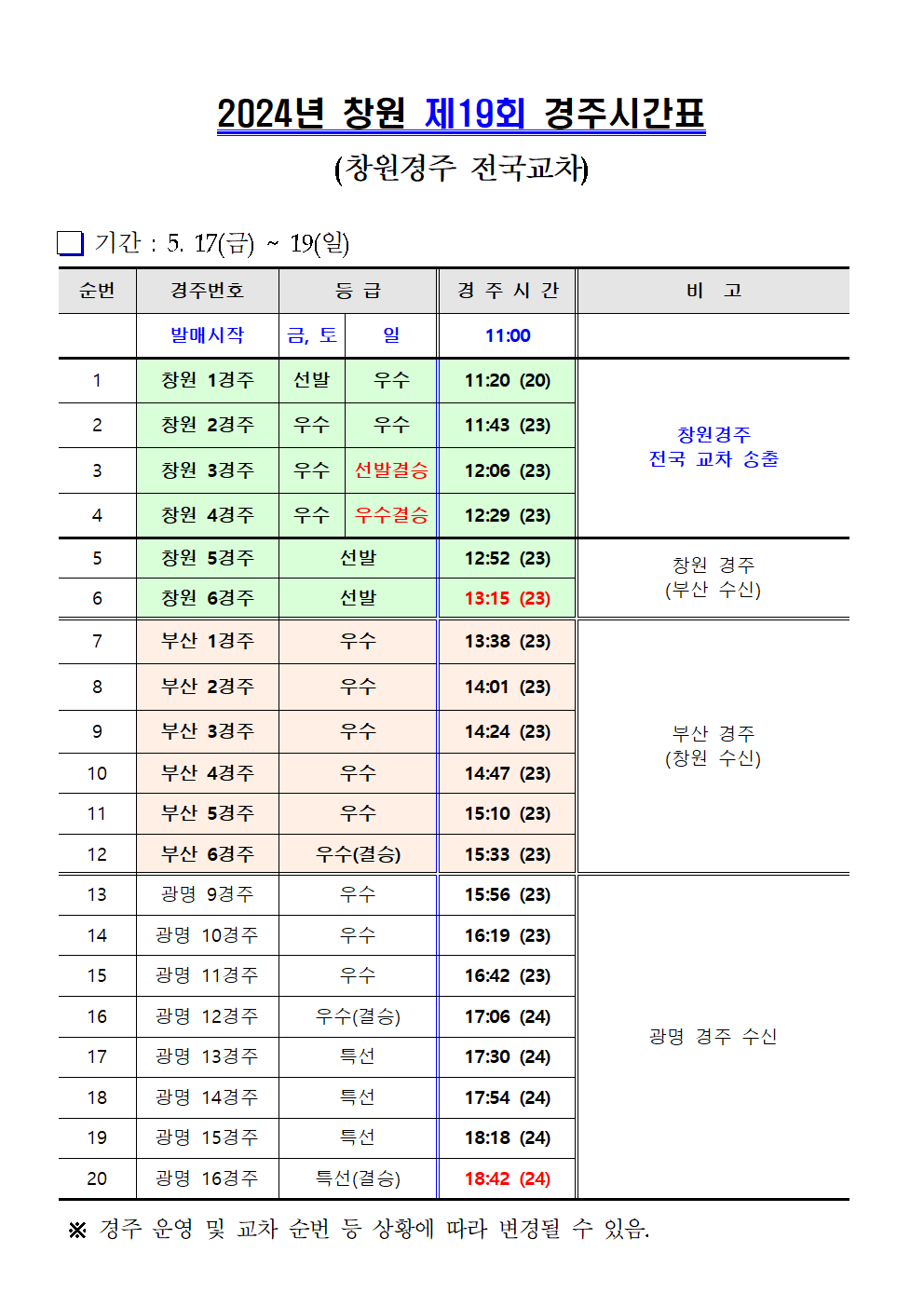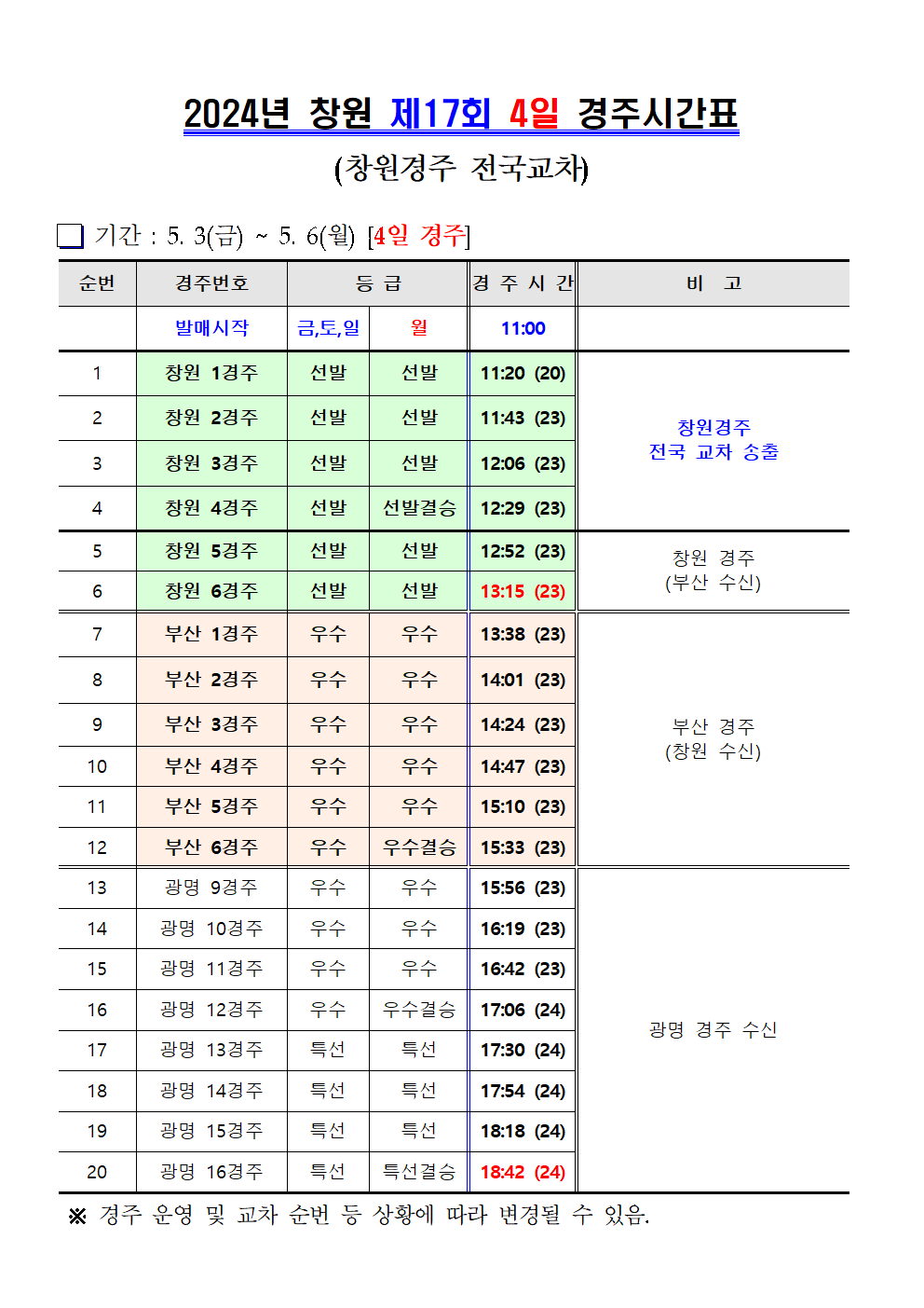 | 창원경륜 5월 (제17~20회) 경주시간표 안내 | |