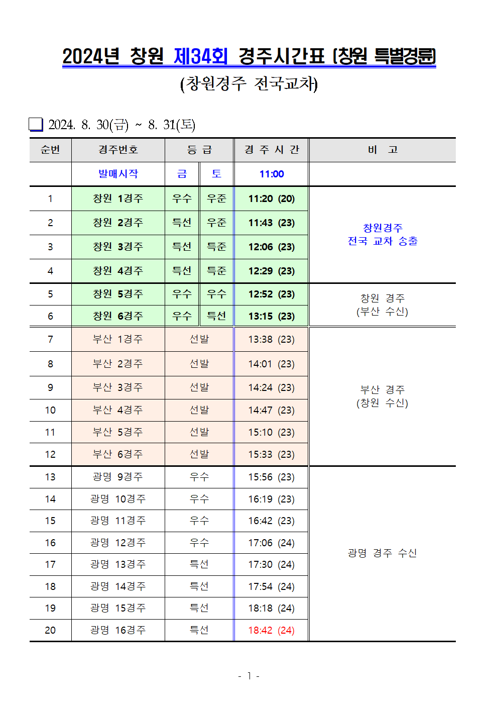 | 창원경륜 9월 (제34~38회) 경주시간표 안내 | |