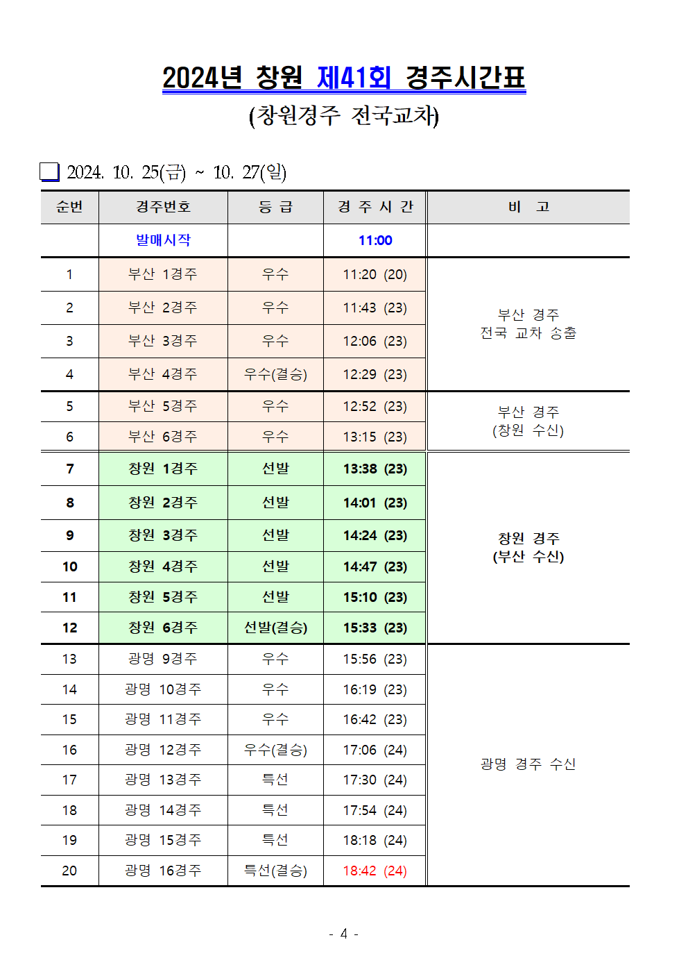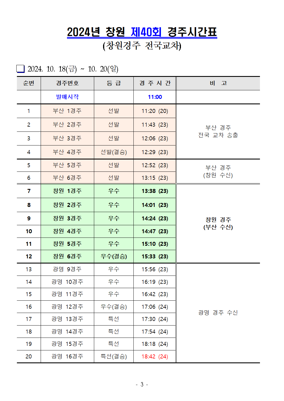| 창원경륜 10월 (제39~41회) 경주시간표 안내 | |