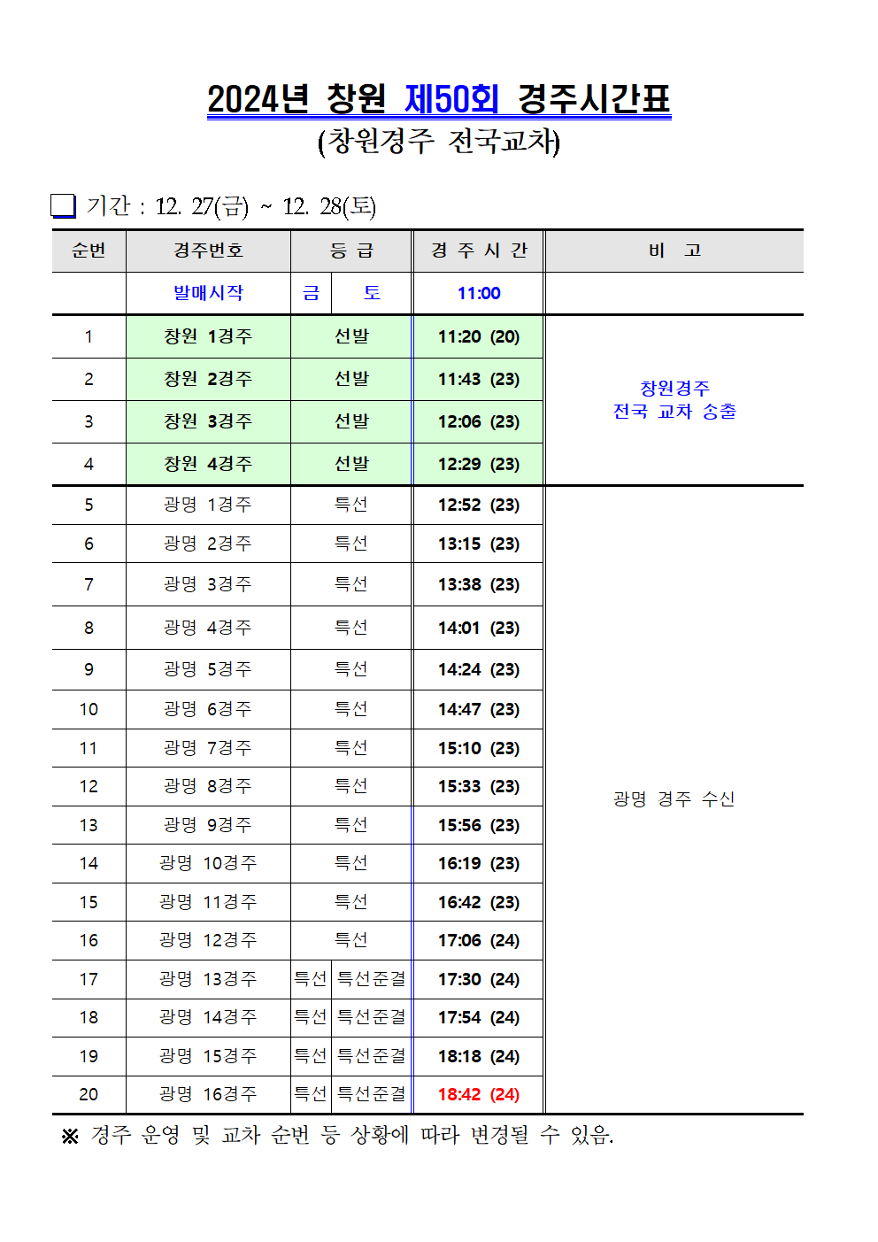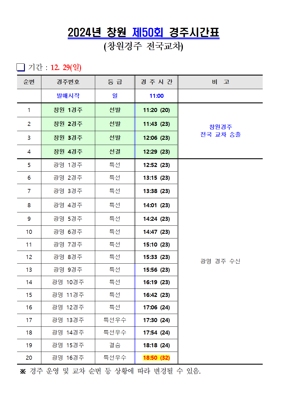 | 창원경륜 제 50회차 광명 그랑프리 경주 시간 변경 안내 [12.29.(일)] | ||||||||||||||