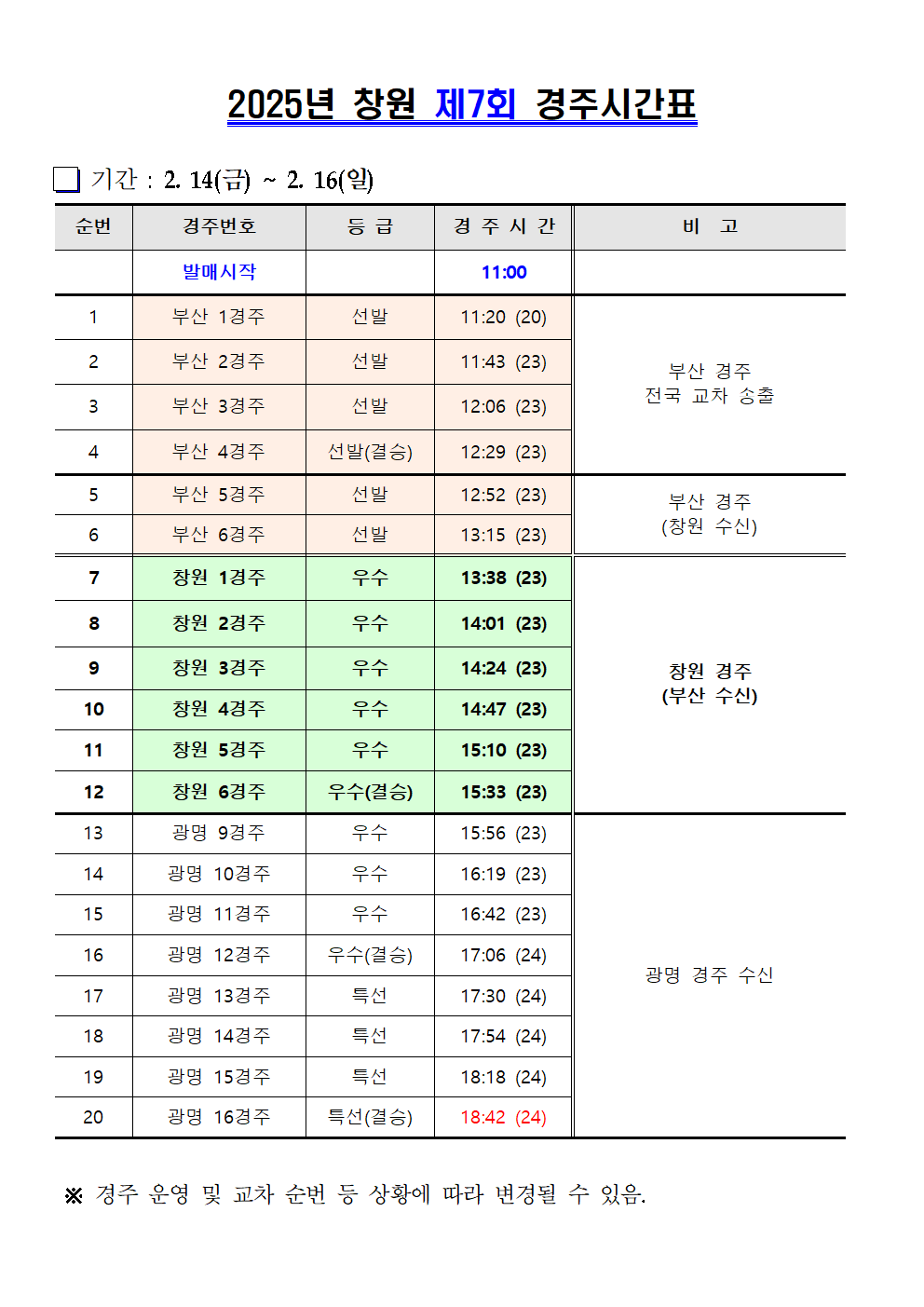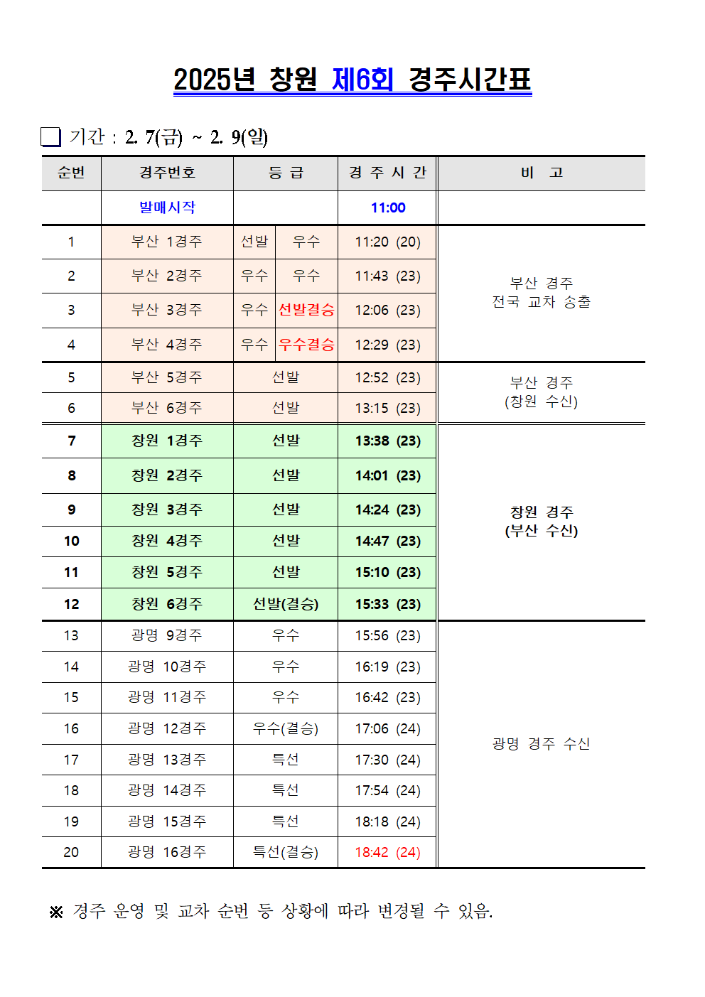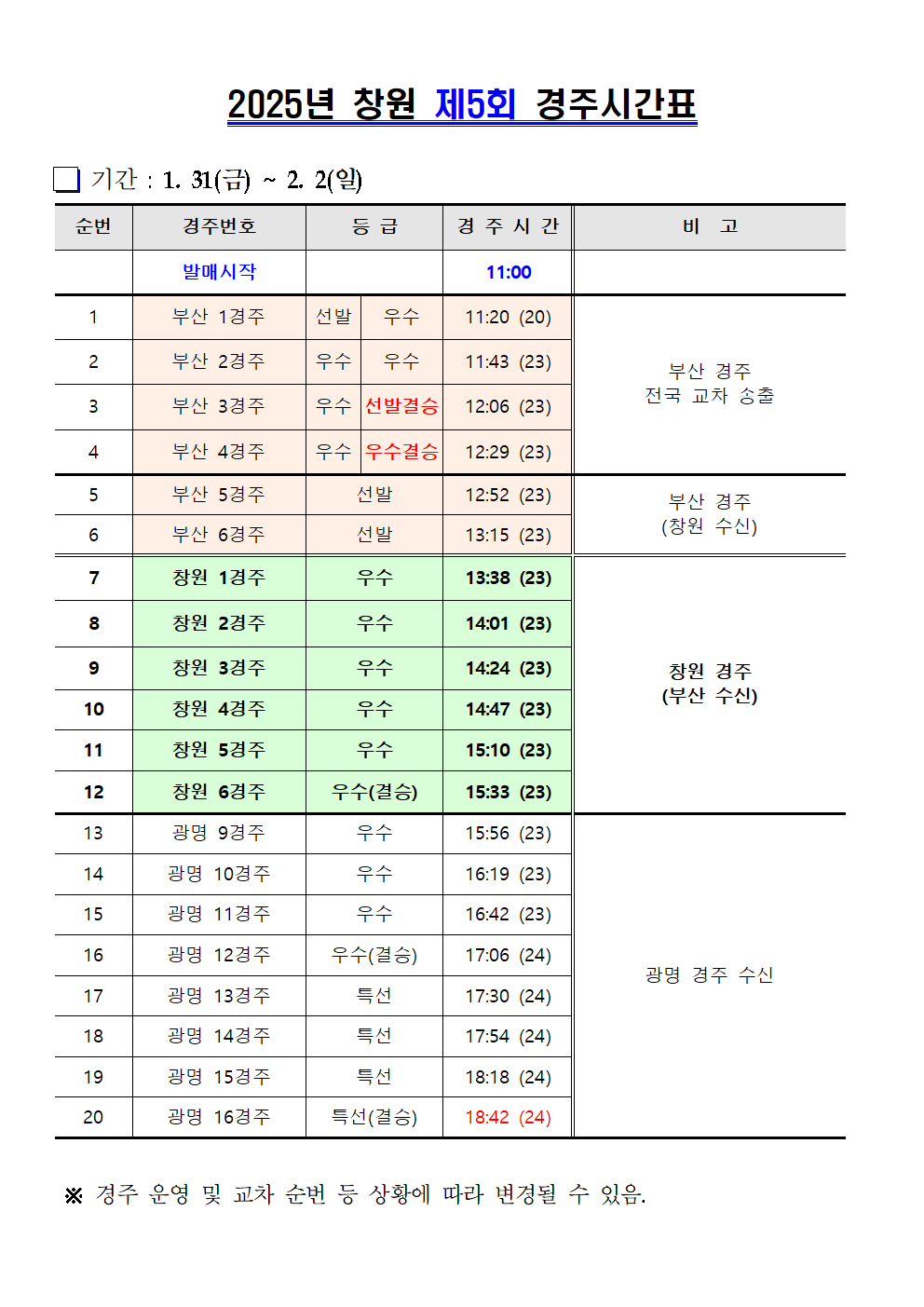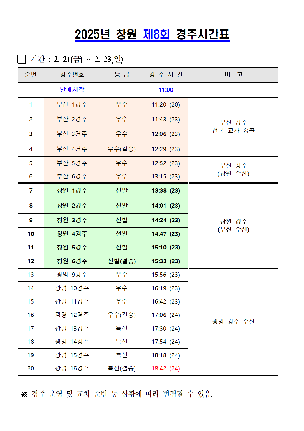 | 2025년 창원경륜 제 5~8회 경주시간표 | |