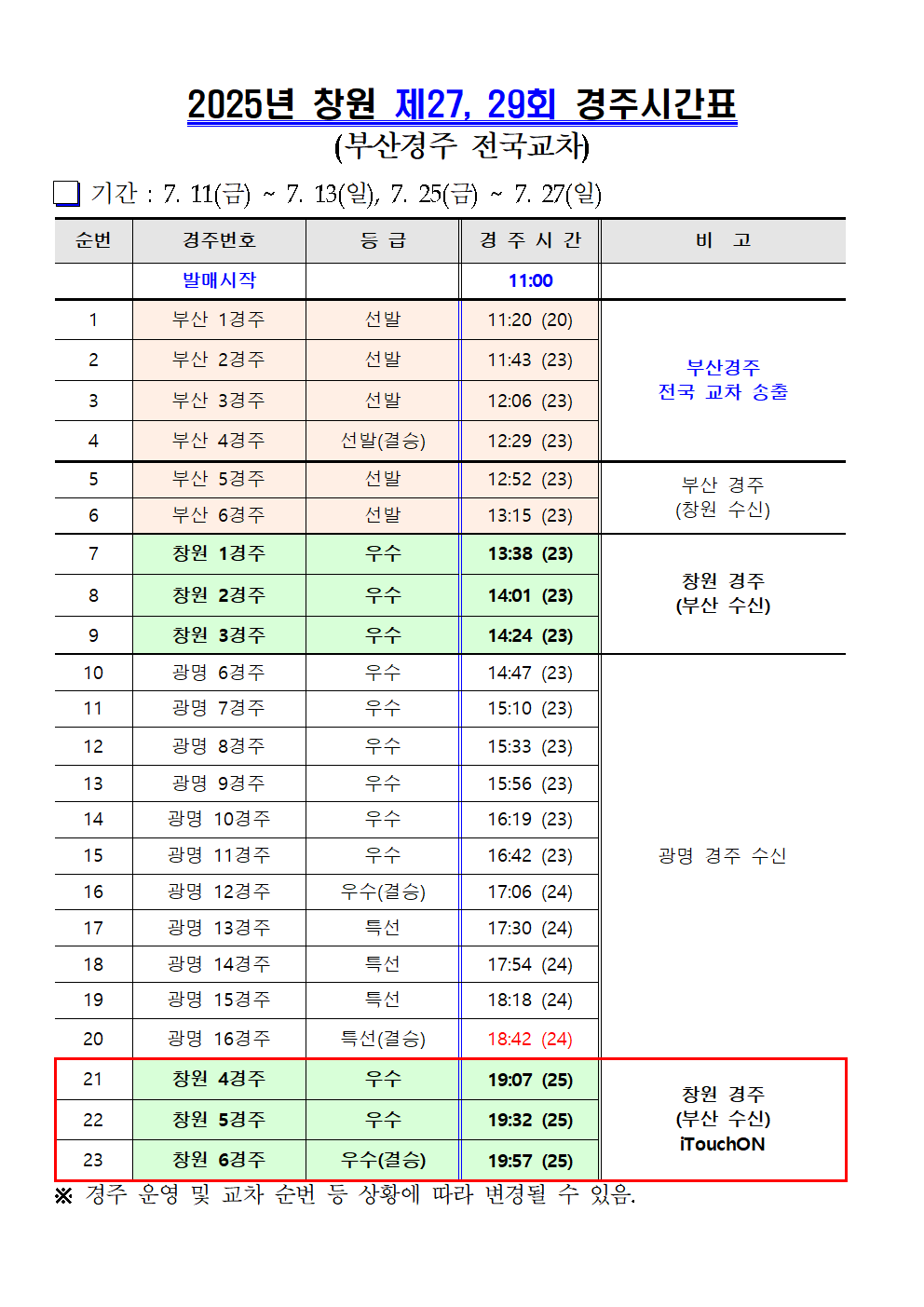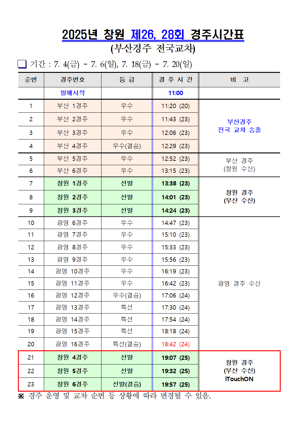 | 2025년 창원경륜 제 26~29회 경주시간표 안내 | |