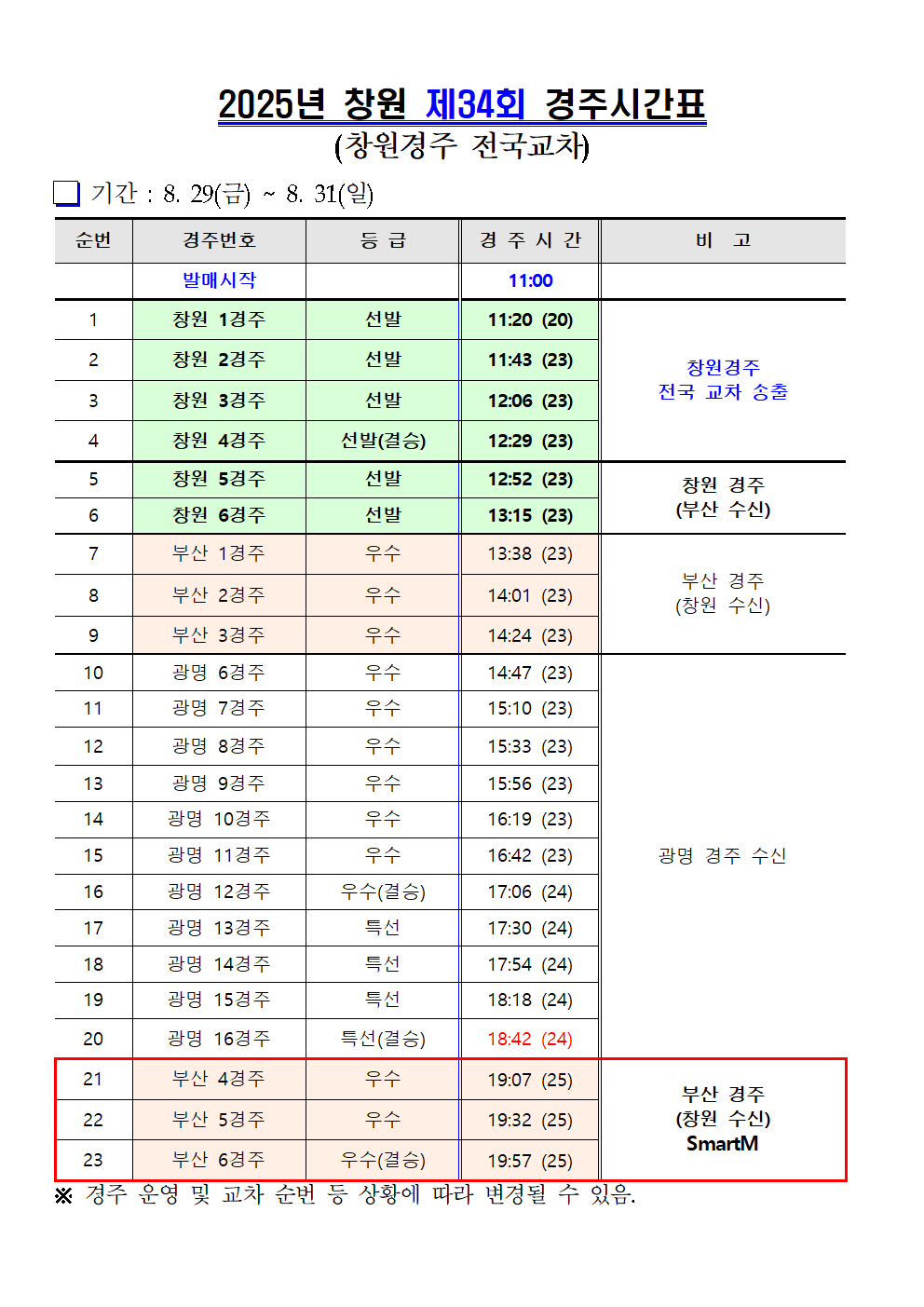 | 2025년 창원경륜 제 30~34회 경주시간표 안내 | |
