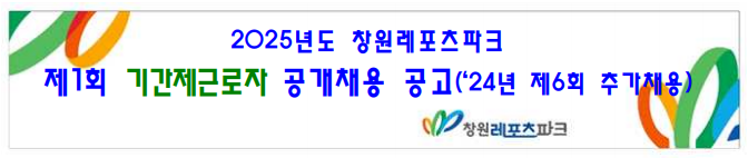 | 2025년도 창원레포츠파크 제1회 기간제근로자 공개채용 공고(2024년 제6회 추가채용)[청년 체험형 인턴] | |