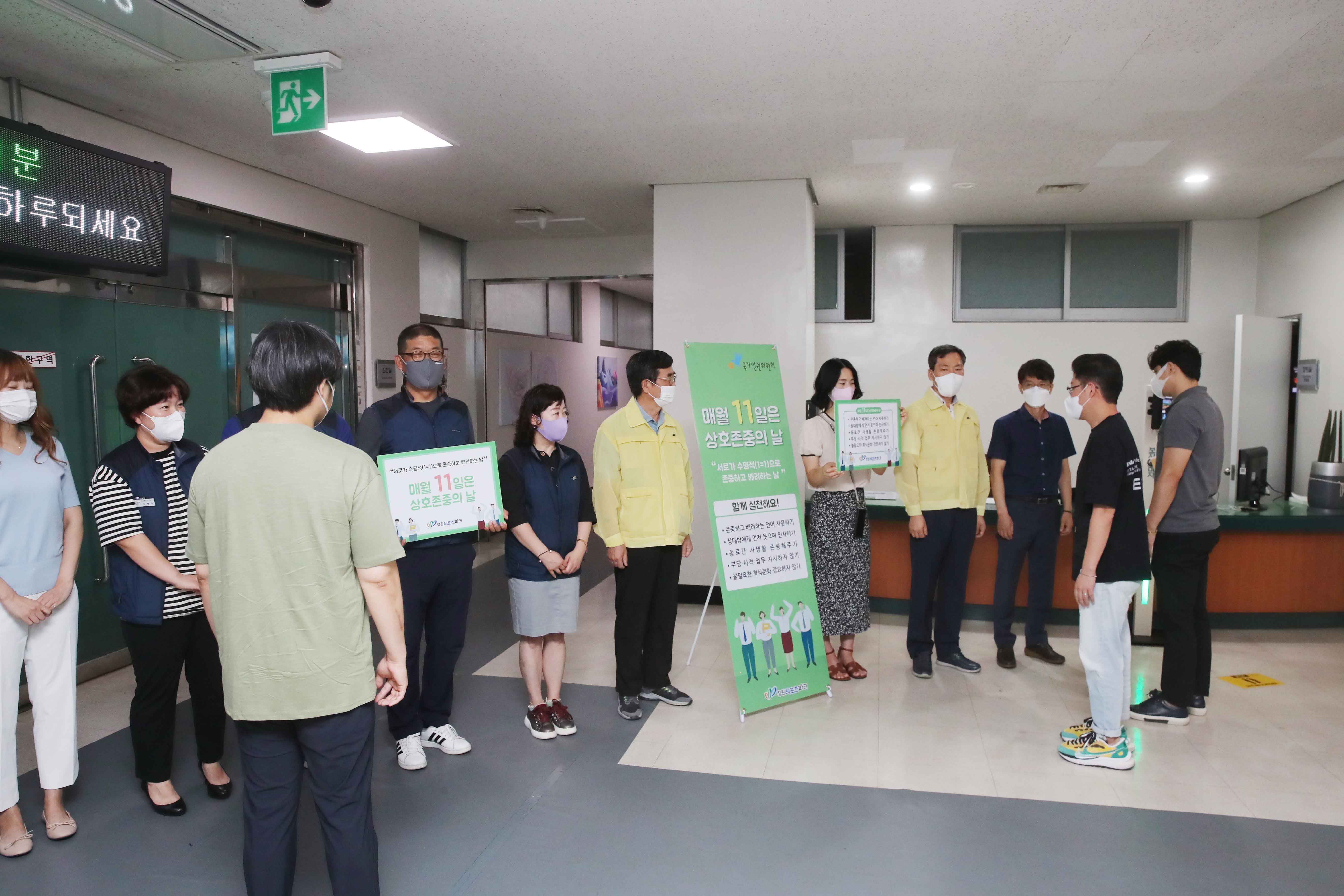 제목 : 창원레포츠파크 상호 존중의 날 운영 - 1대1간 서로 수평적으로 존중하고 배려한다는 의미로 11일로 정해 - 레포츠파크 인권 경영의 조기 정착을 위한 노력 창원레포츠파크(이사장 김도훈)가 공단 임직원들의 배려와 존중 문화 붐업을 위해 매월 11일을 ‘상호 존중의 날’로 지정하여 운영하기로 했다. 상호 존중의 날에는 △존중하고 배려하는 언어 사용하기, △상대방에게 먼저 웃으며 인사하기, △동료간 사생활 존중해주기, △부당·사적 업무 지시하지 않기, △불필요한 회식문화 강요하지 않기 등의 캠페인을 실시한다. 또 인권 의식 확산을 위해 다양한 이벤트를 실시하고 월별 추진 과제를 선정하여 전 임직원들의 자발적 참여를 유도하는 등 인권 존중 조직문화 조성에 힘쓴다는 계획이다. 김도훈 이사장은 “상호 이해와 소통을 통하여 수평적 조직문화 형성에 힘쓰겠다”며 “특히 인권 보호와 갑질 근절을 위한 모든 노력을 다하겠다”고 밝혔다. * 사진 있습니다. 끝. |