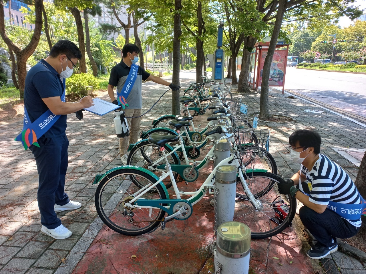 제목 : 창원레포츠파크, ‘누비자 바로바로 이동정비’ 창원레포츠파크(이사장 김도훈)가 수탁 운영중인 창원시 공영자전거 누비자의 안전성 제고와 신속한 정비를 위해 ‘누비자 바로바로 이동정비’를 운영한다. 레포츠파크는 3인 1조로 이동정비팀을 구성해 누비자 터미널에 거치된 고장 누비자를 현장에서 바로 정비하고 코로나19 예방 방역 또한 실시할 계획이다. 김도훈 이사장은 “그 동안 고장난 누비자를 누비자중앙센터까지 가져와서 정비를 하고 다시 터미널로 분배하느라 대당 정비시간이 길어져 시민들의 이용에 불편함이 있었다”며 “이제는 현장에서 바로 정비가 가능해 시민들의 편의성과 업무의 효율이 많이 오를 것으로 예상된다”고 말했다. 2021년 9월 현재 3,748대의 누비자가 창원 시내 곳곳을 누비고 있다. * 사진 있습니다. 끝. |