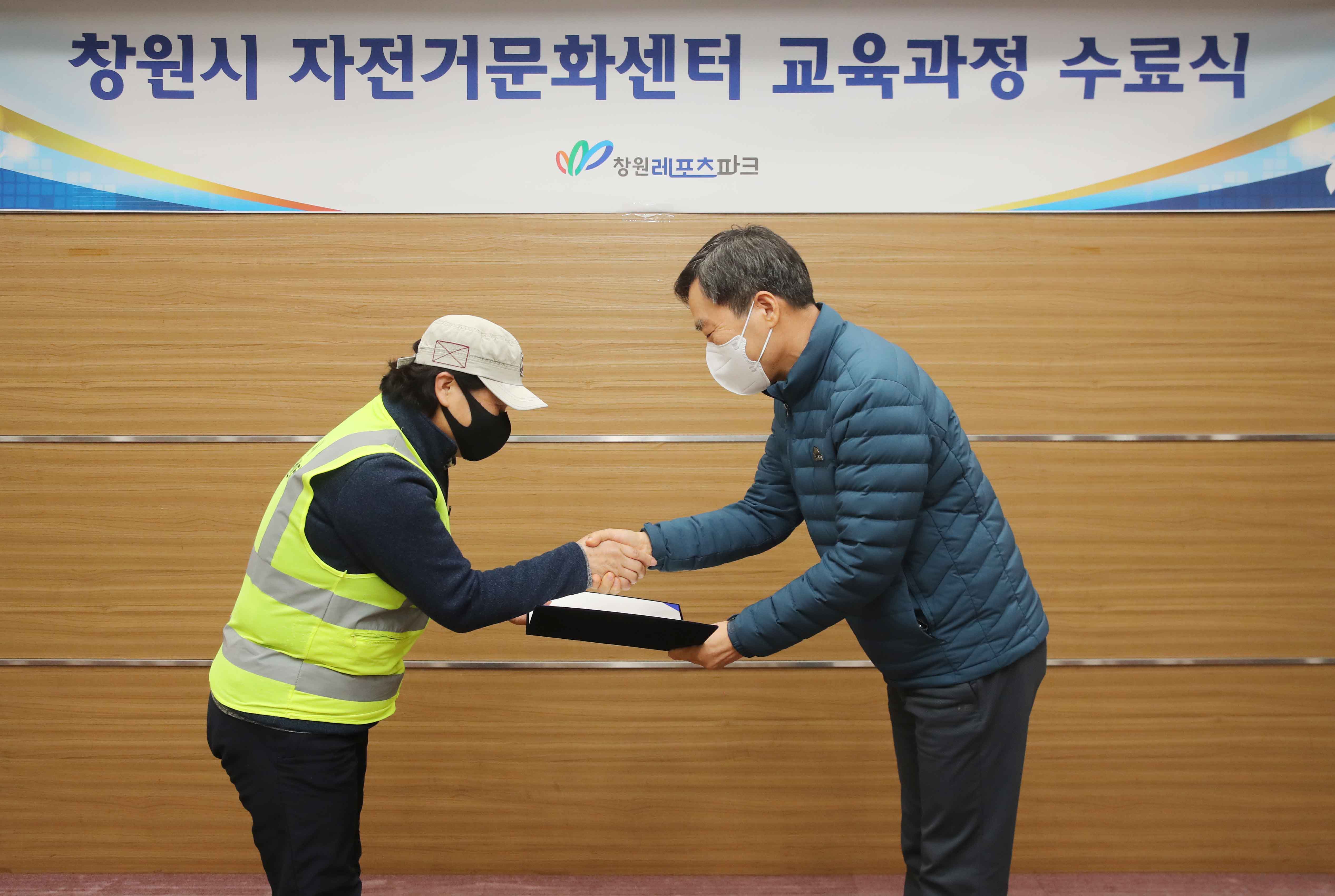 제목 : 창원레포츠파크 자전거 무료교육 수료식 - 2008년 교육 실시 이래 6천9백여명의 자전거 교육 수료생 배출 창원레포츠파크(이사장 김도훈)가 2일 대강당에서 자전거 무료교육 중급반 수강생 17명이 모인 가운데 수료식을 가졌다. 레포츠파크는 21년 한 해 동안 생활반, 직장인반, 중급반 등 16개 과정 총 275명의 수료생을 배출했다. 또 창원시 교육지원청과 연계하여 방학특강 자전거 안전교육도 4회 실시했다. 이날 수료식에서 홍명표 상임이사는 “자전거를 배움으로써 건강을 찾고 자신감을 가질 수 있었을 것이라 생각한다”며 “교육 받은대로 일상 생활에서 안전하게 자전거 생활을 즐기실 수 있으시길 당부드린다”고 말했다. * 사진 있습니다. 끝. |