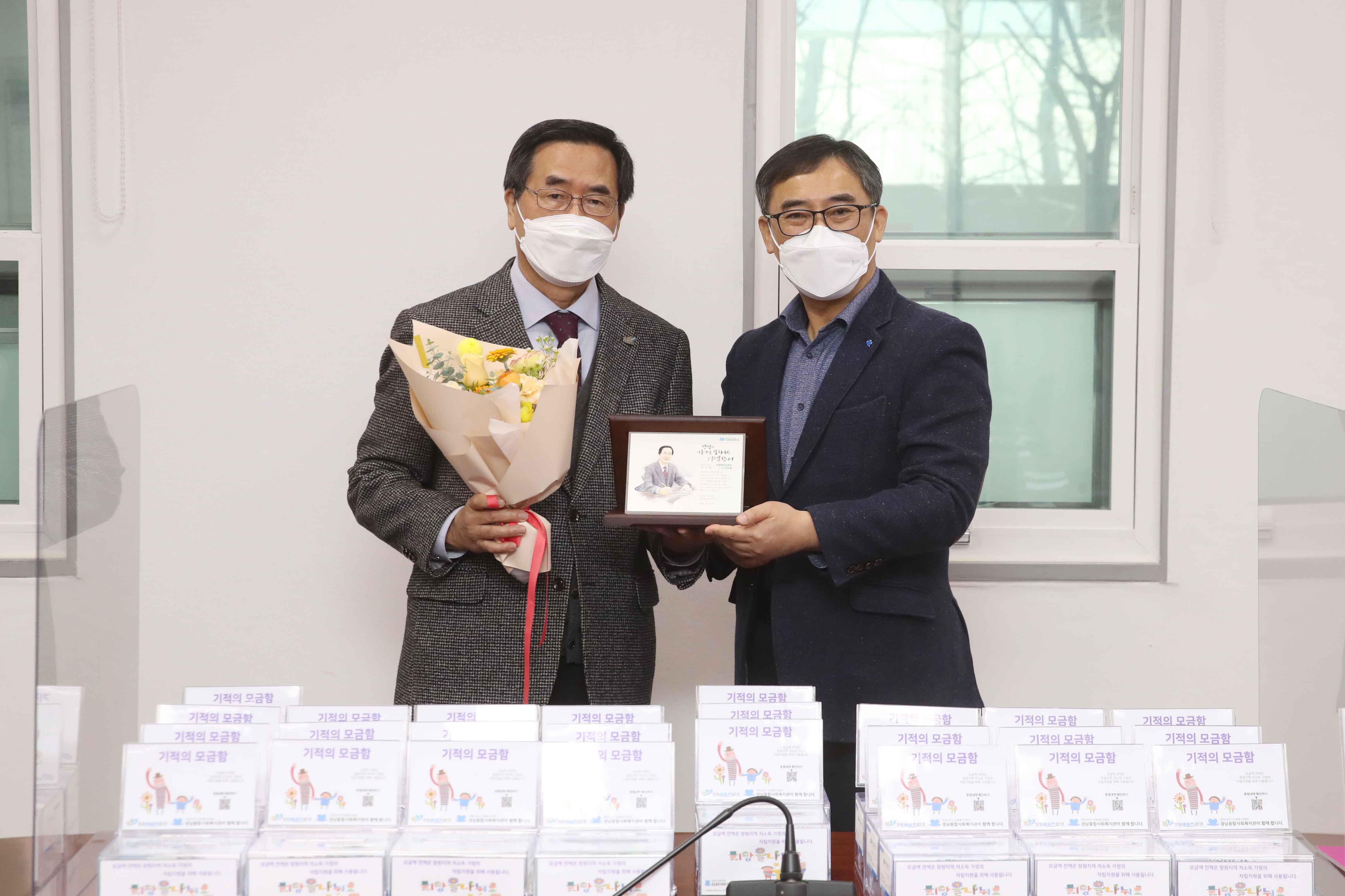 제목 : 창원레포츠파크, 경남종합사회복지관에 온정 전달 - 1년간 모은 사랑의 모금함과 청렴카페 수익금 전달 창원레포츠파크(이사장 김도훈)가 20일 어려운 이웃을 위해 써달라며 부서별로 1년간 모은 사랑의 모금함과 감사안전팀에서 운영중인 청렴카페 수익금을 경남종합사회복지관에 전달했다. 한편 이날 경남종합사회복지관은 김도훈 레포츠파크 이사장에게 작년 9월 상호 체결한 업무협약과 이와 연계한 다양한 봉사활동에 대한 감사의 뜻으로 감사패를 전달했다. 김도훈 이사장은 “많은 금액은 아니지만 추운 겨울을 보내고 있는 이웃을 위해 써달라”고 말하며 “앞으로도 레포츠파크가 할 수 있는 다양한 봉사활동을 펼치겠다”고 밝혔다. * 사진 있습니다. 끝. |