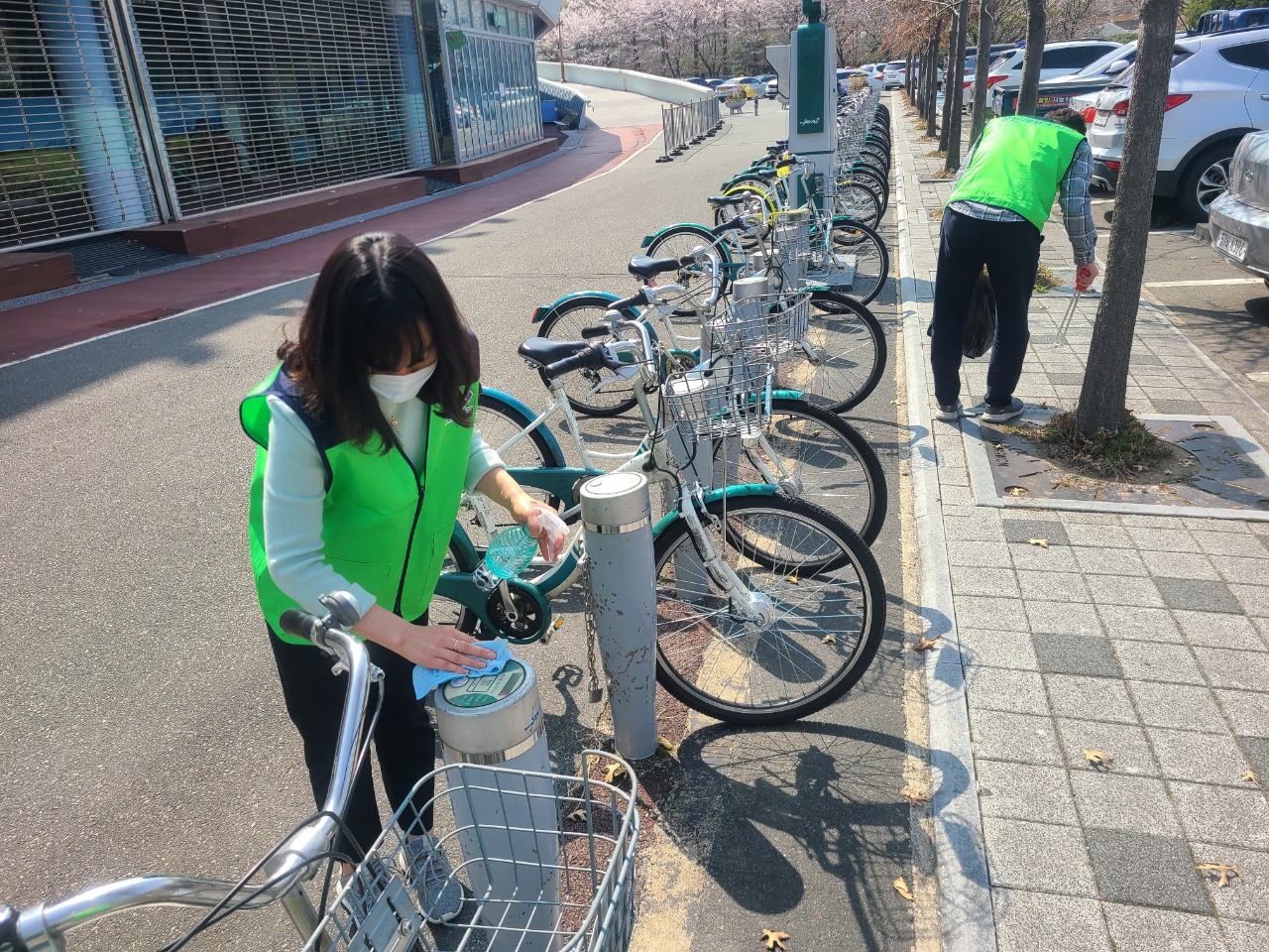 제목 : 창원레포츠파크 임직원 누비자 터미널 환경정비 - 팀별로 구역을 지정해 성산구 관내 누비자 터미널 환경정비 활동 창원레포츠파크(이사장 김도훈) 전 임직원들이 6일 성산구 일대에서 누비자 터미널 환경정비 봉사활동을 펼쳤다. 이날 레포츠파크는 팀별로 구역을 지정해 각 누비자 터미널 환경정비와 함께 코로나 전염병 예방을 위한 방역을 실시했다. 김도훈 이사장은 “봄철 미세먼지와 꽃가루로 인해 누비자 터미널과 자전거가 오염돼 이용에 불편함이 있다고 들었다”며 “이용에 불편함 없도록 청결하게 관리할 수 있게 환경정비 활동을 자주 펼치겠다”고 말했다.