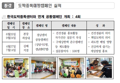 | 2017년 도박중독예방 홍보캠페인 실적 | |
