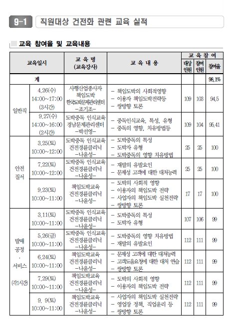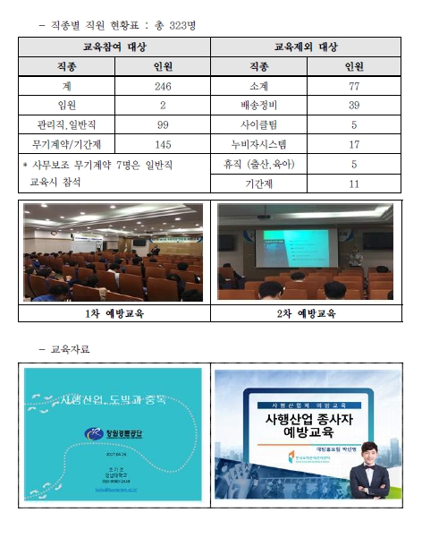 | 첨부파일 | 직원대상 건전화 관련 교육 실적.jpg(231KB)직원대상 건전화 관련 교육 실적1.jpg(164KB) |