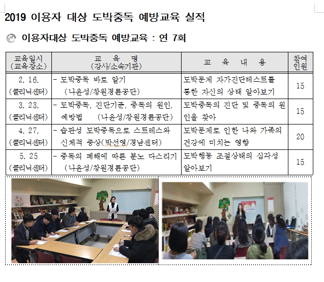 | 2019 이용자대상 중독예방 교육 실시 | |