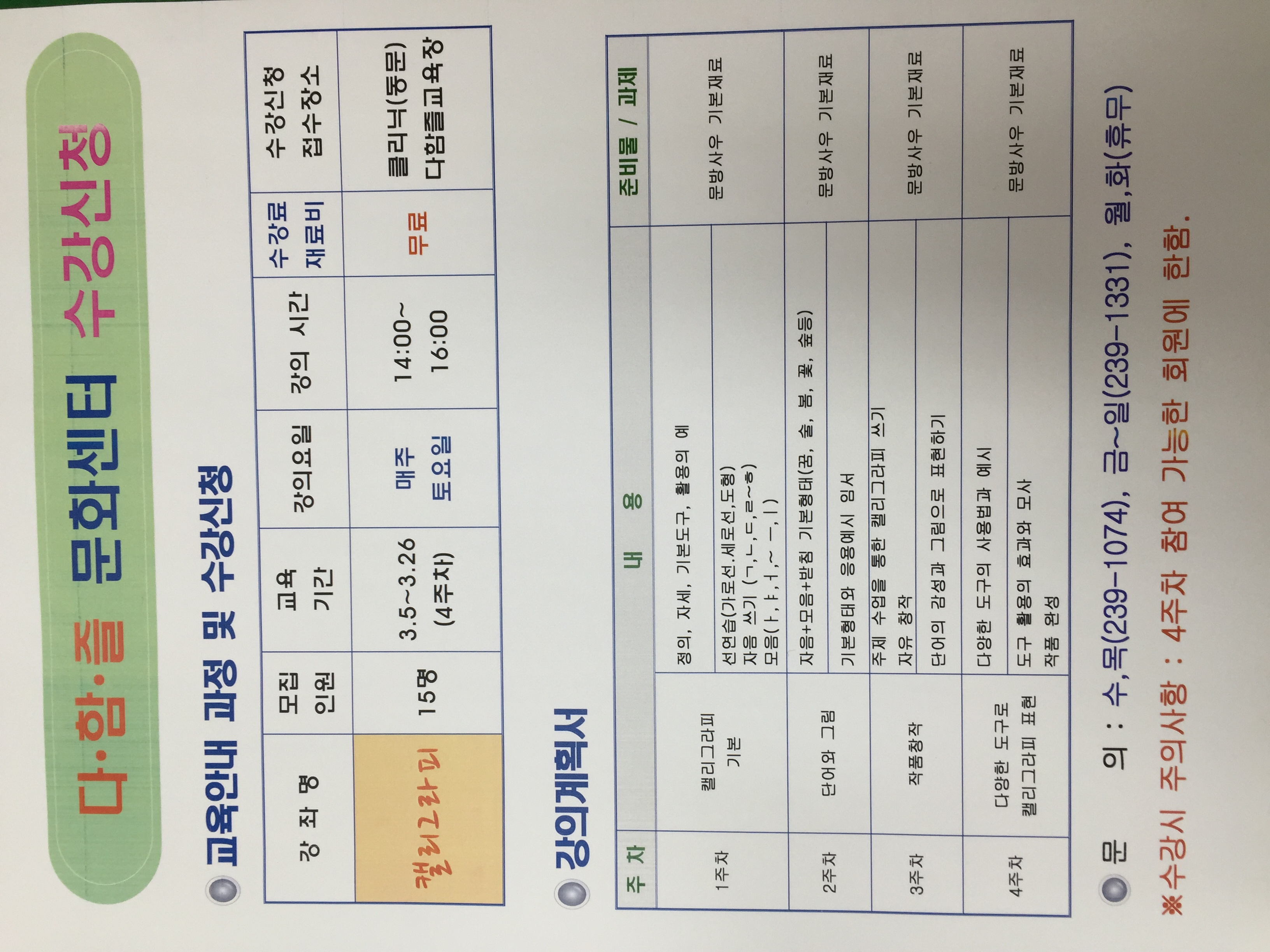 | 2016 다함즐 캘리그라피 수강신청 | |