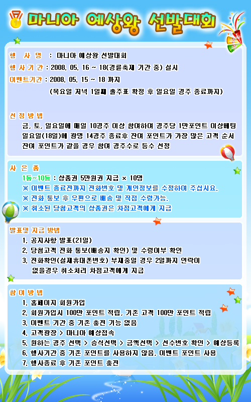 | 마니아 예상왕 선발대회 안내 | |