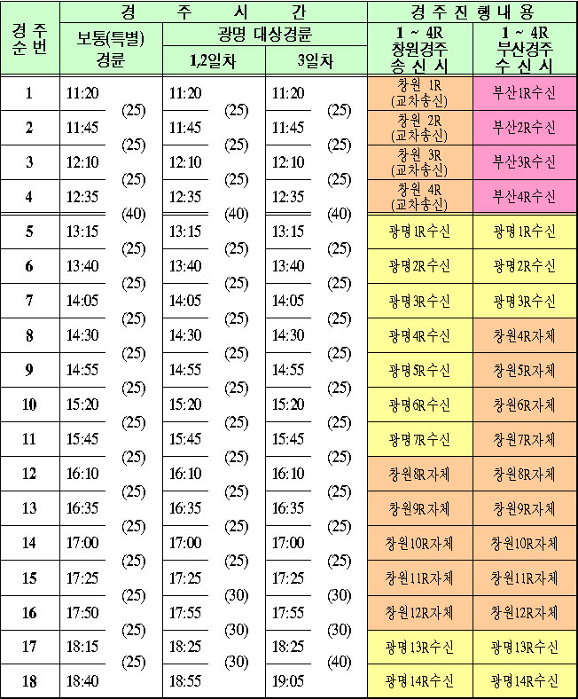 ※ 경주운영 사정에 따라 일정은변경될 수 있음