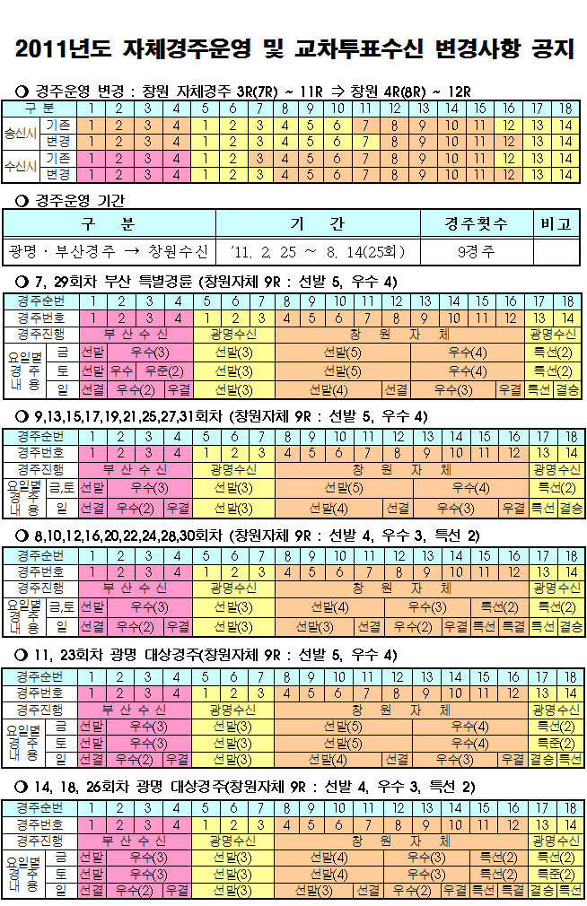 | 2011년도 자체경주운영 및 교차투표수신 변경사항 공지 | |