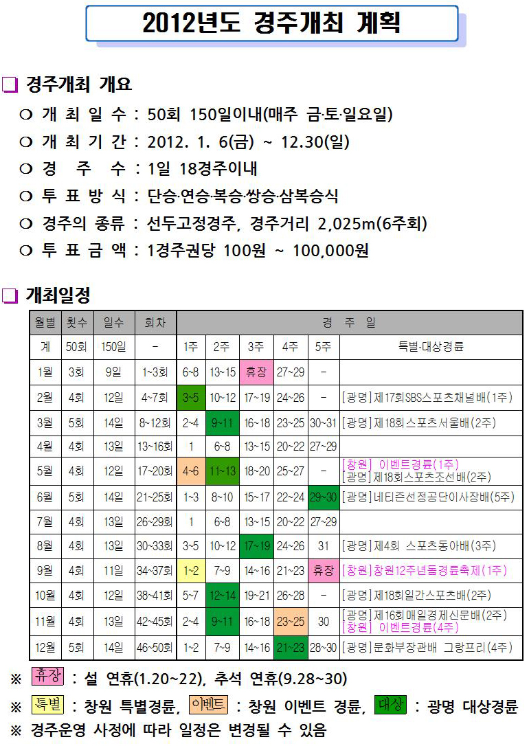 | 2012년도 경주개최 계획 안내 | |