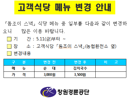| 고객식당 메뉴 변경 안내 | |