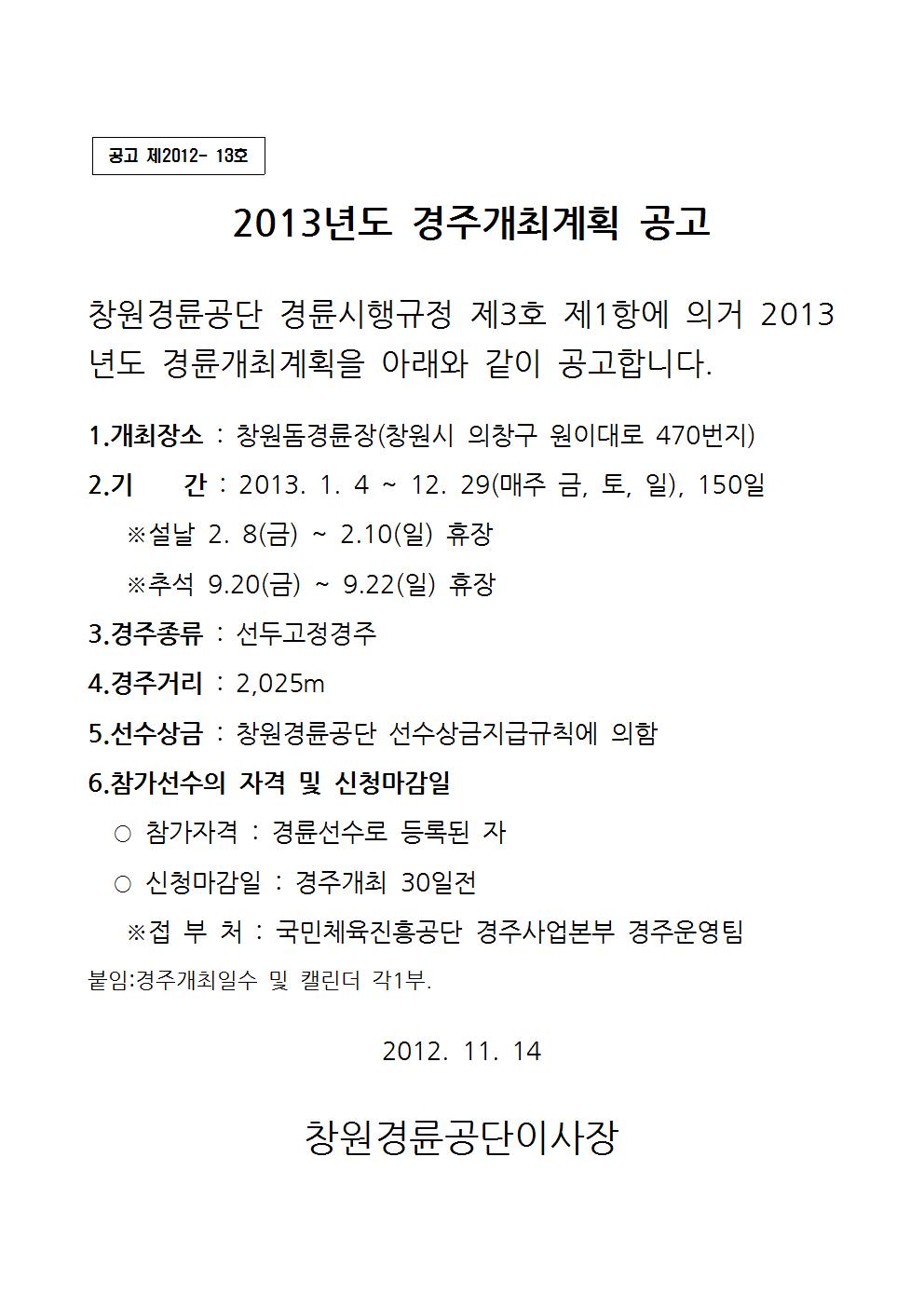 | 2013년도 경주개최 계획 안내 | |
