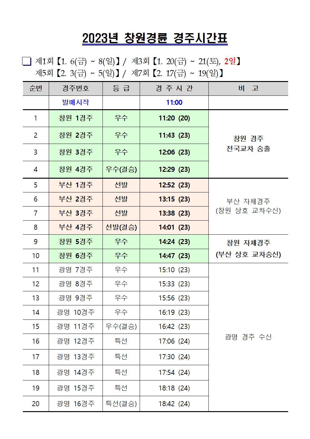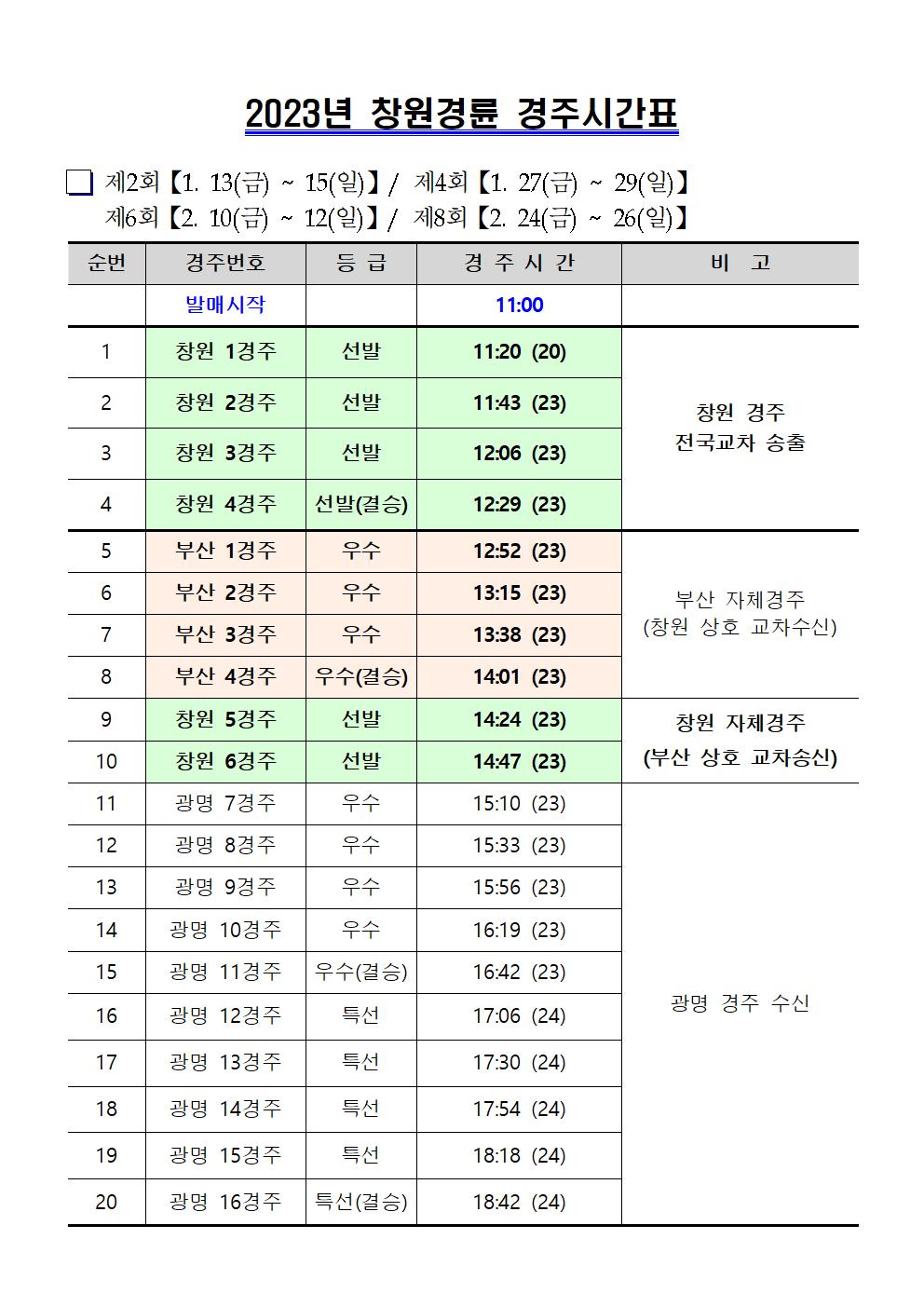 | 2023년도 창원경륜 경주시간표 안내(1~2월) | |