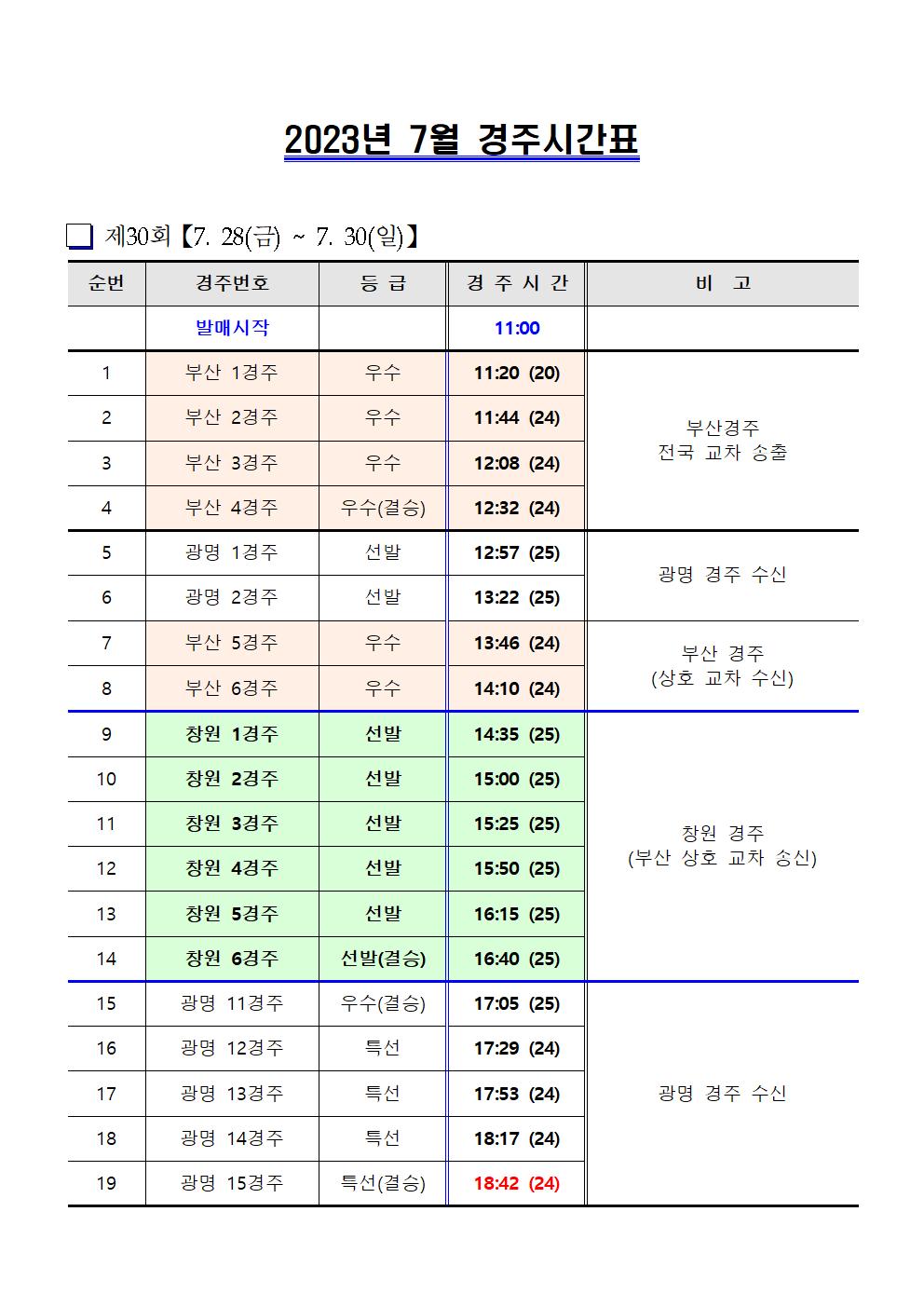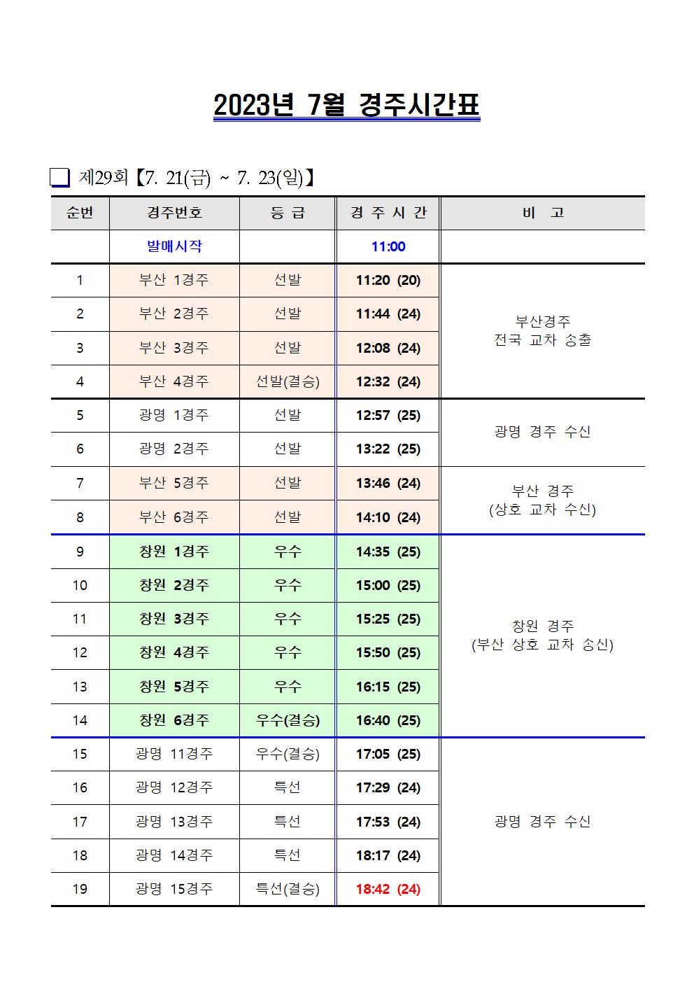 | 창원경륜 제29~30회 경주시간표(7.21~7.30) | |