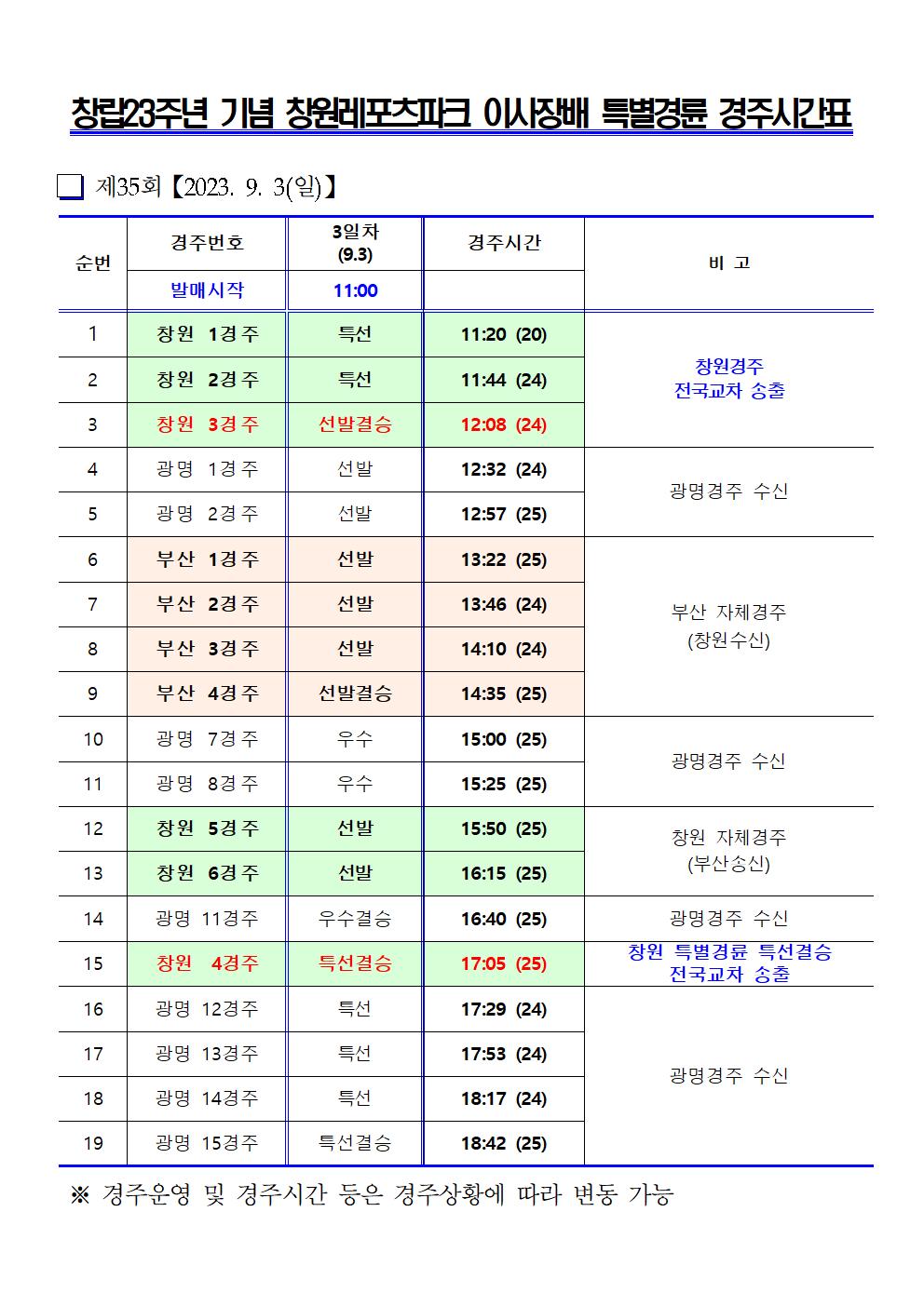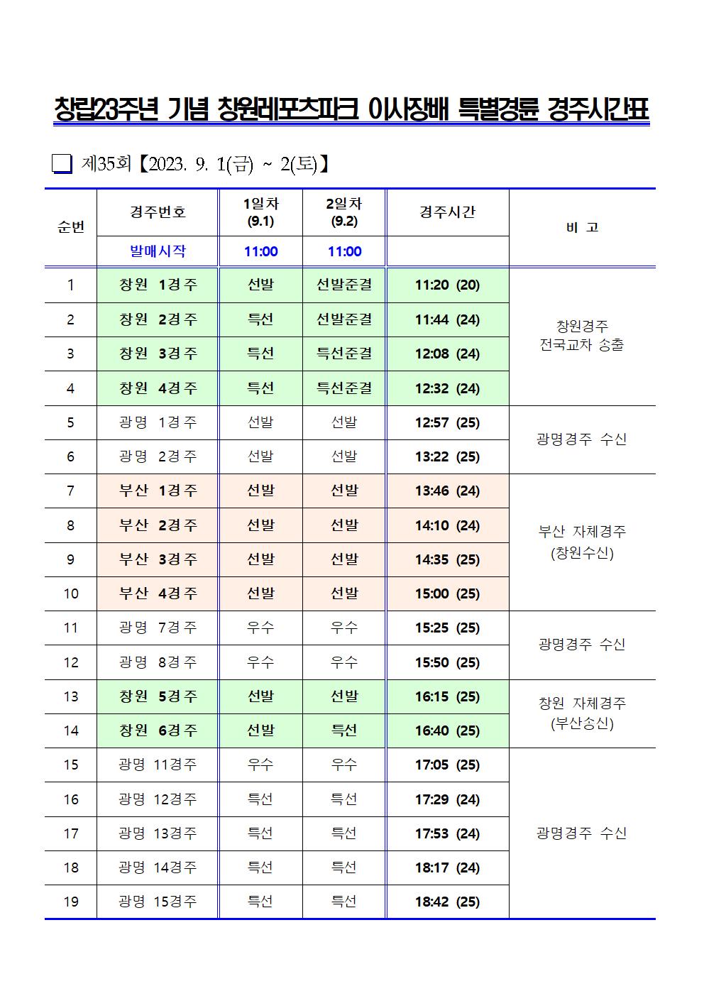 | 창립23주년 기념 특별경륜 경주운영 및 시간표 안내[9.1(금)~9.3(일)] | |