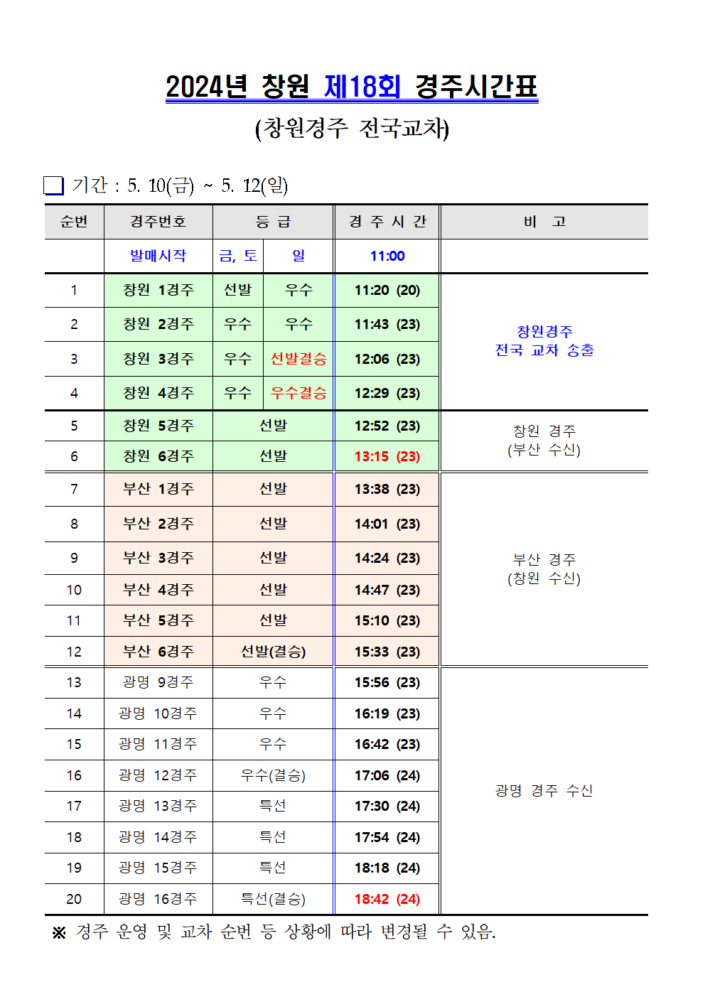 | 창원경륜 5월 (제17~20회) 경주시간표 안내 | |