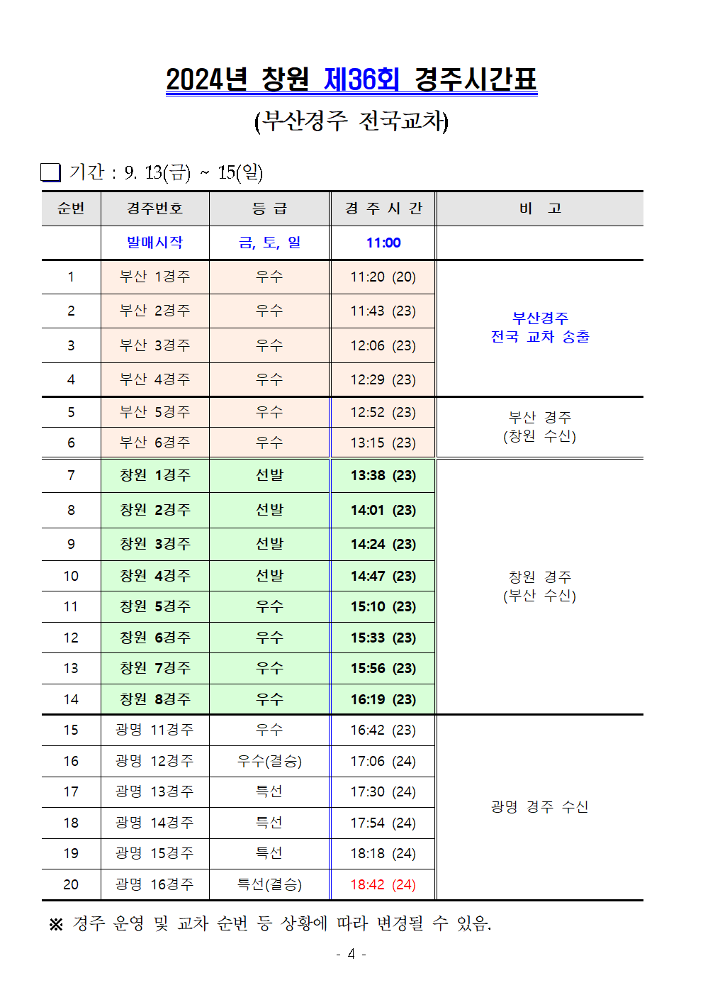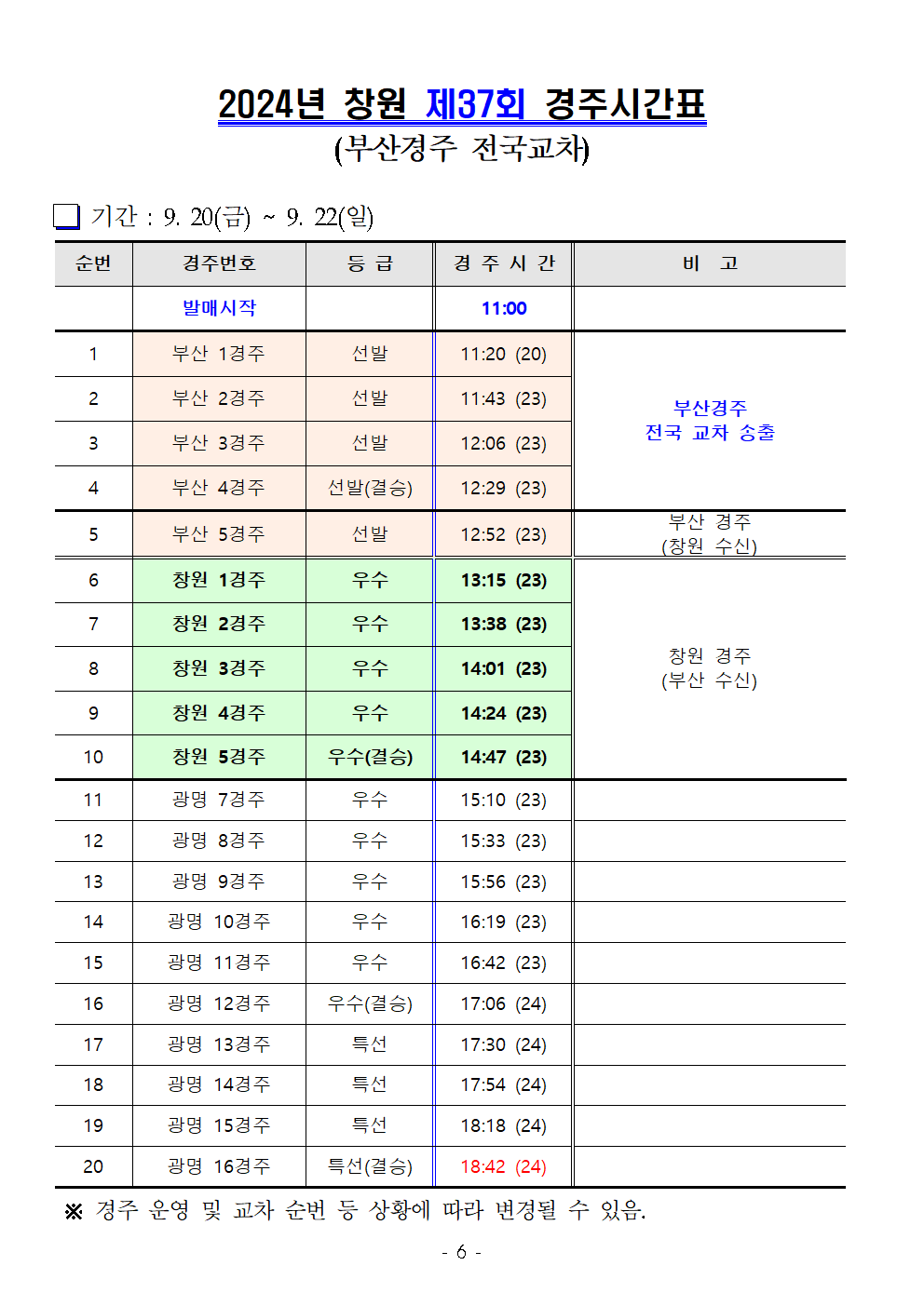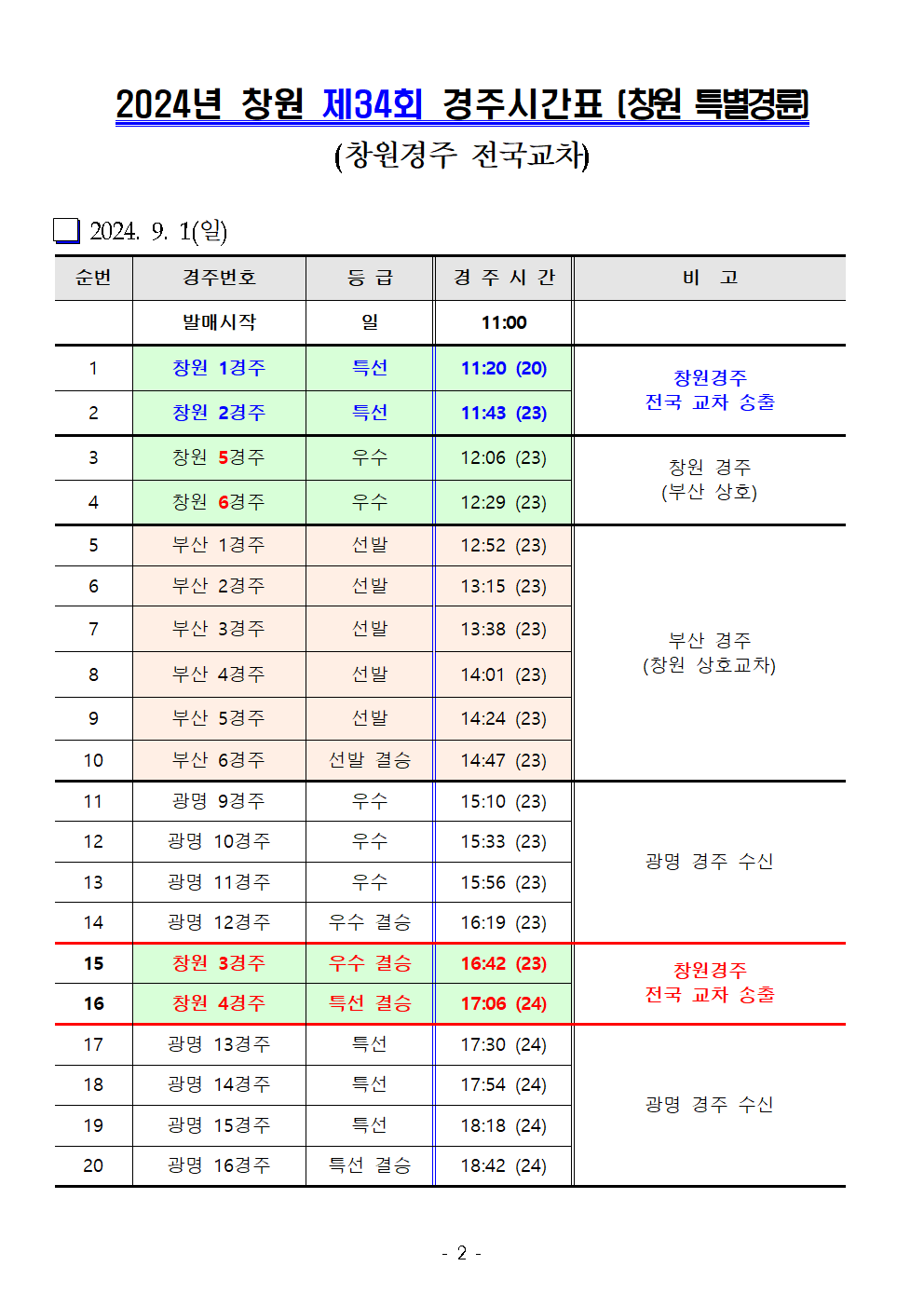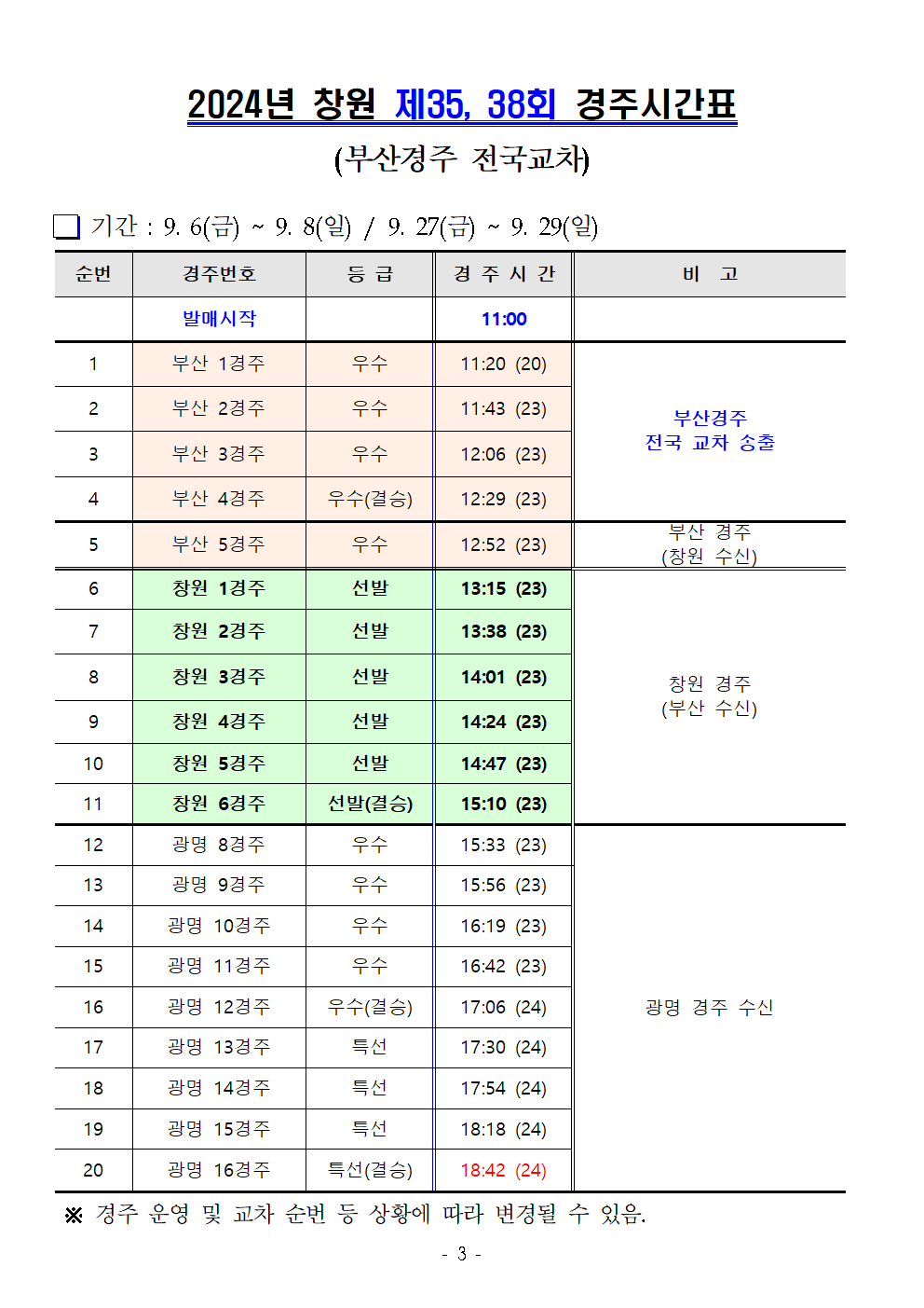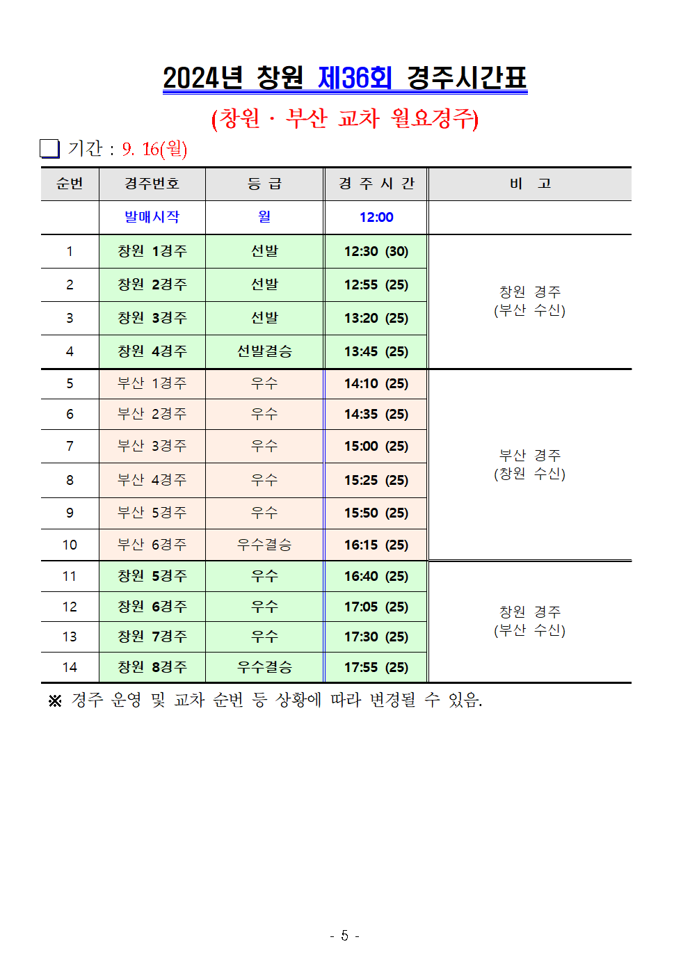 | 창원경륜 9월 (제34~38회) 경주시간표 안내 | |