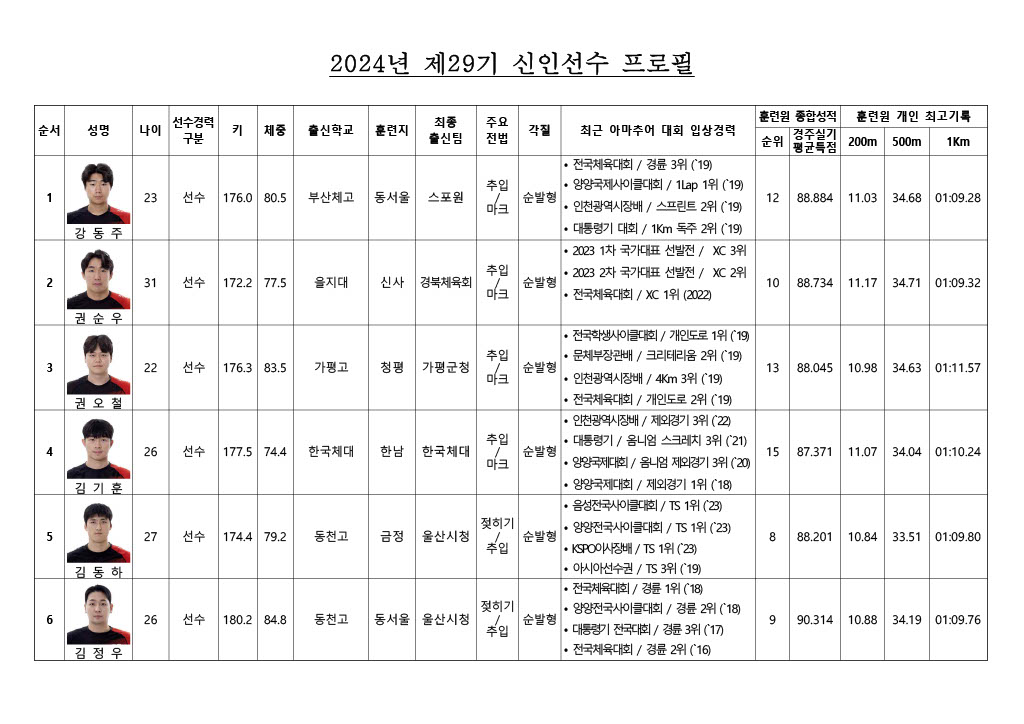 | 2024년 제29기 신인선수 프로필 안내 | |