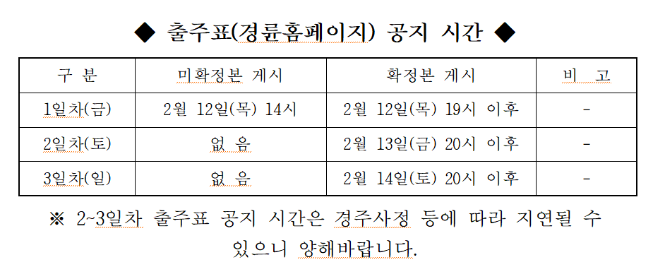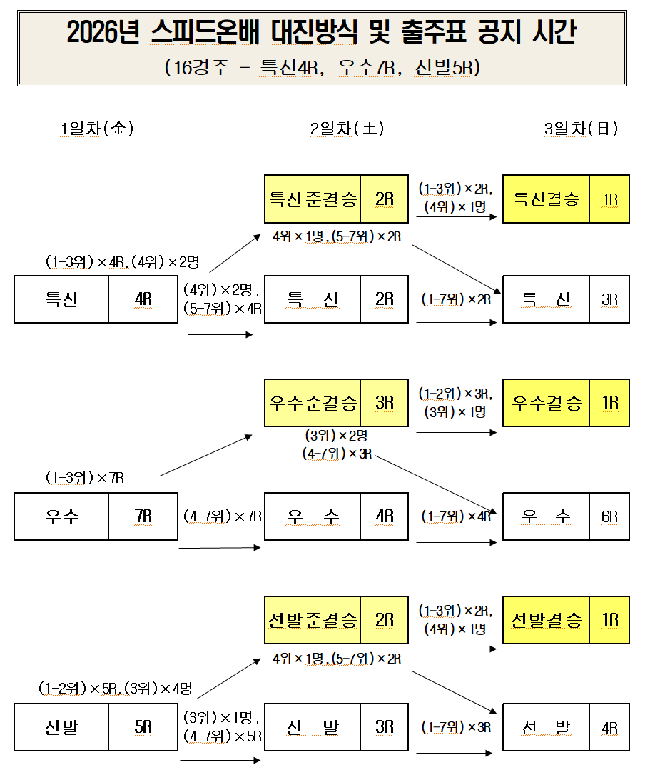 | 2026년 스피드온배 대상경륜(광명) 대진방식 및 출주표 공지시간 안내 | |