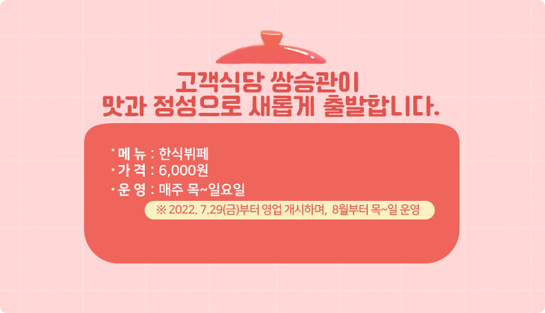 | 고객식당(쌍승관) 한식뷔페로 변경운영 안내 | |