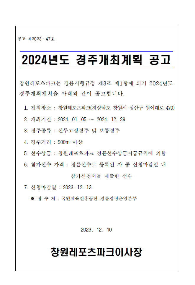 | 2024년도 경주개최계획 공고 | |