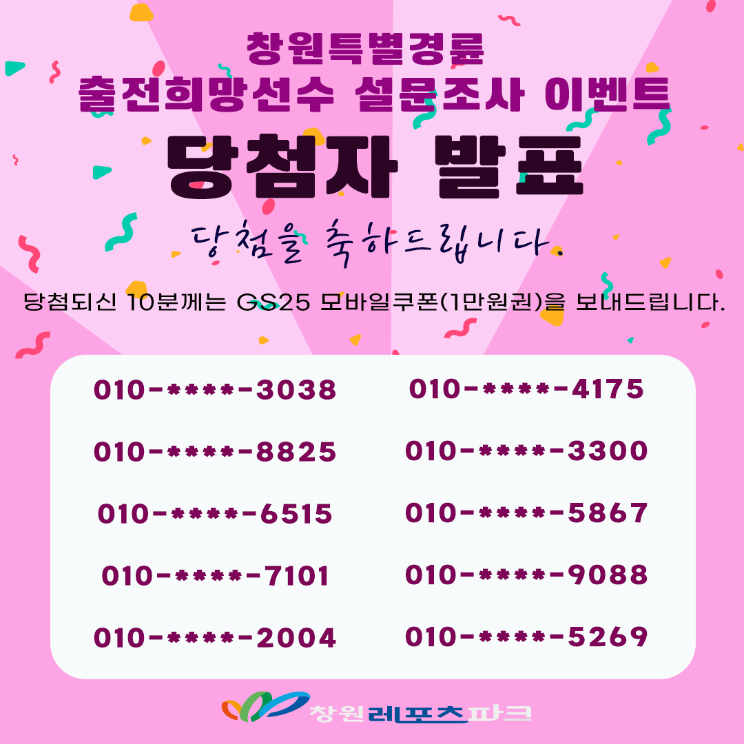 | 창원특별경륜 출전 희망선수 설문조사 이벤트 당첨자 발표 | |