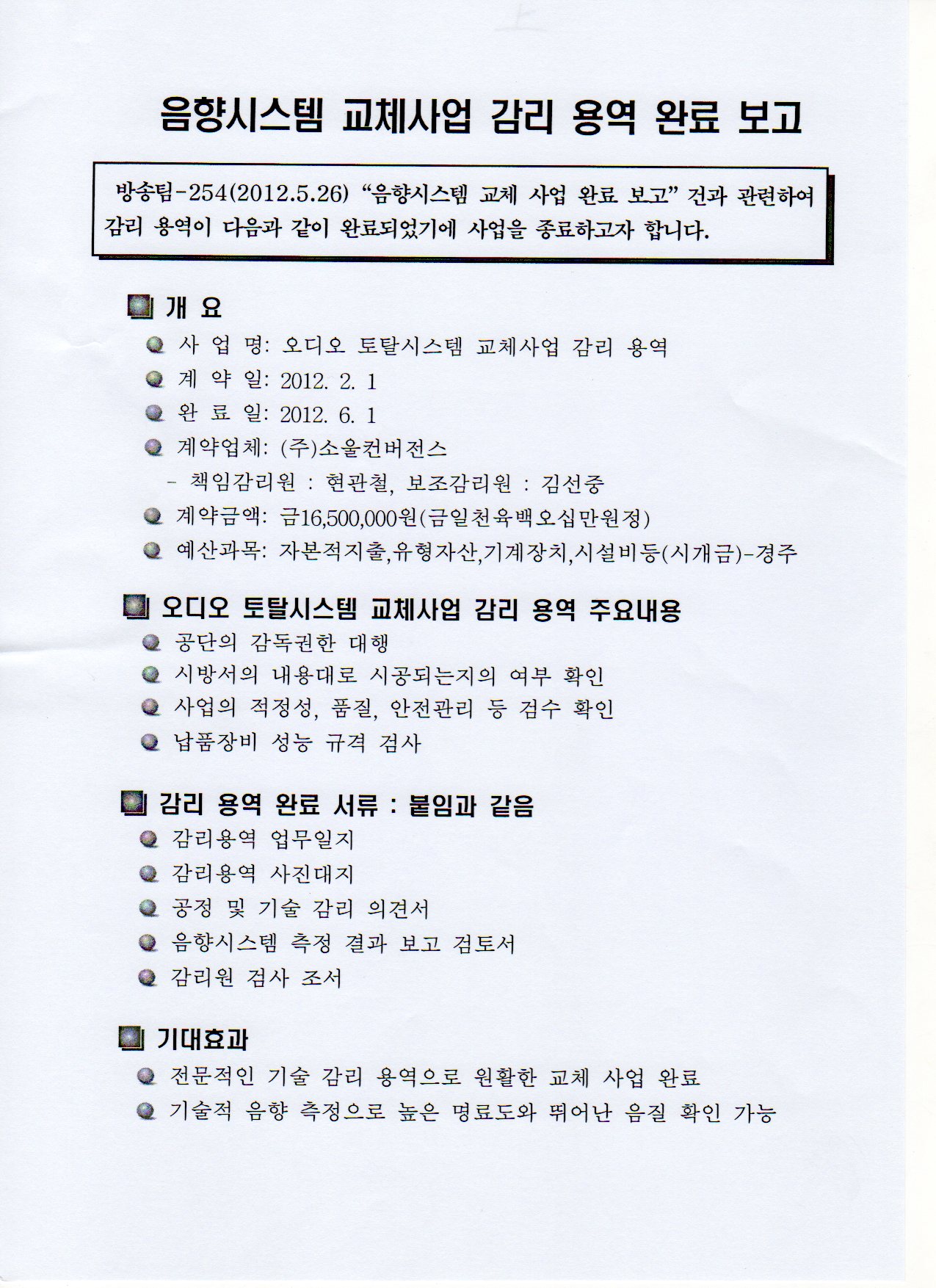 | 오디오 토탈시스템 교체 사업 감리 용역 | ||