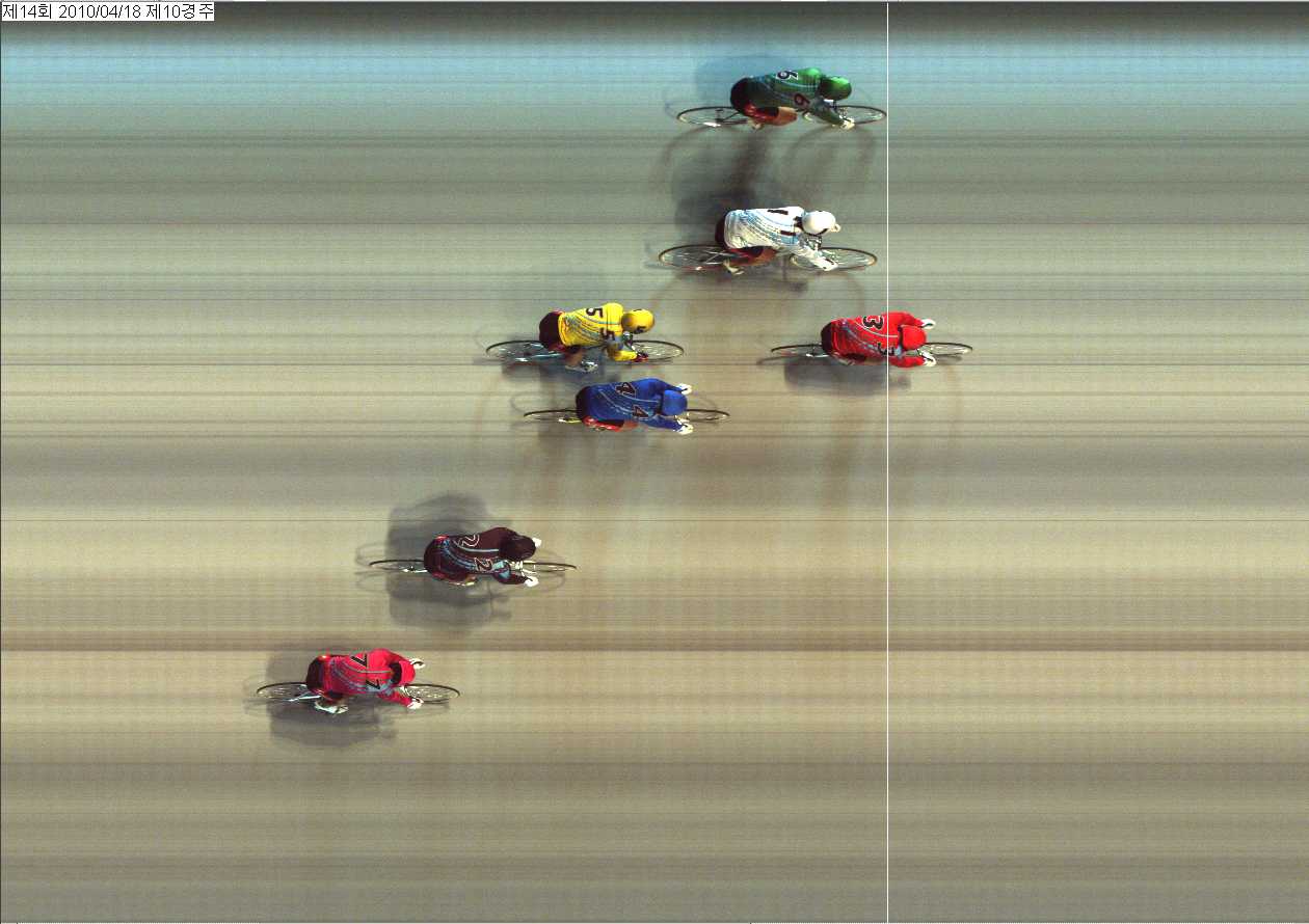제14회차 3일째 10경주(2010년 4월 18일)에서 2위 주광일선수[6번]와 3위 최대용선수[1번]가 1/8W차로 들어왔습니다.