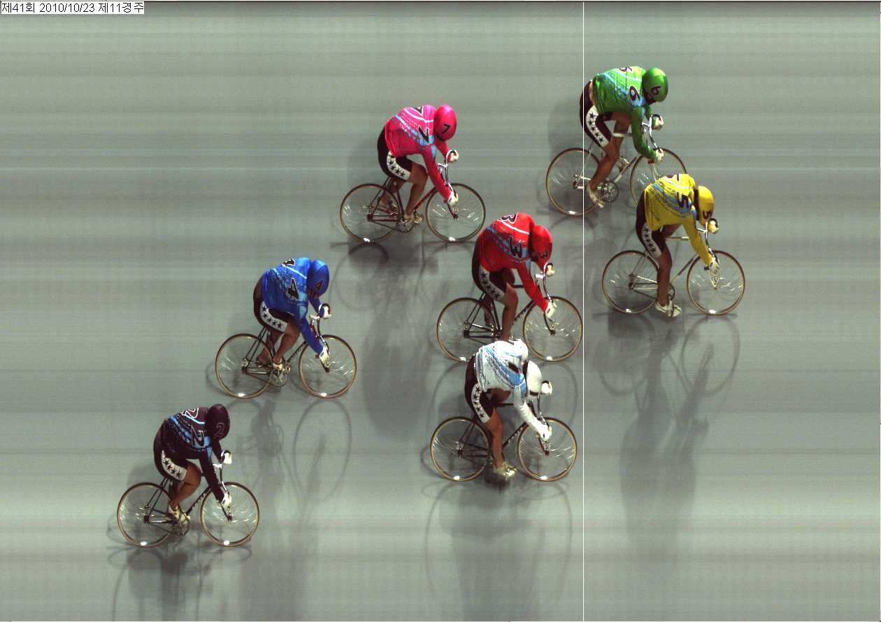 제41회차 2일째 11경주(2010년 10월 23일)에서 3위 이형재선수[3번]와 4위 구광규선수[1번]가 1/8W(바퀴)차로 들어왔습니다.