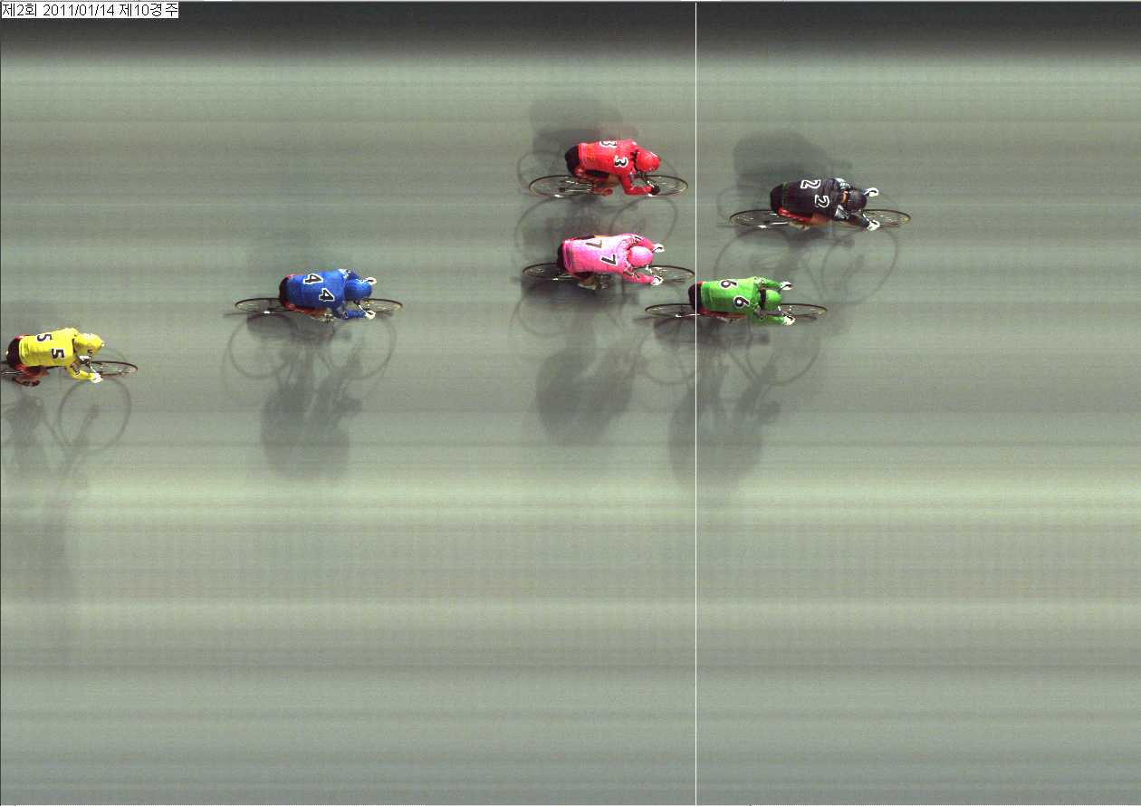 | 제2회차 1일째 10경주(2011년 1월 14일) 3위 착순 판독사진 | |