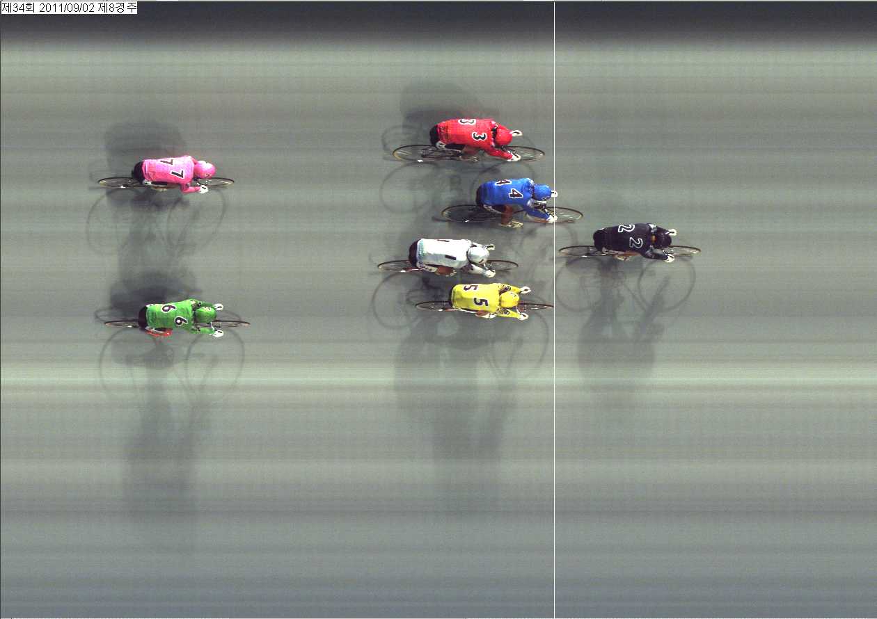 제34회차 1일째 8경주(2011년 9월 2일)에서 3위 구자면[5번]선수와 4위 노영식[3번]선수가 1/8W(바퀴)차로 들어왔습니다
