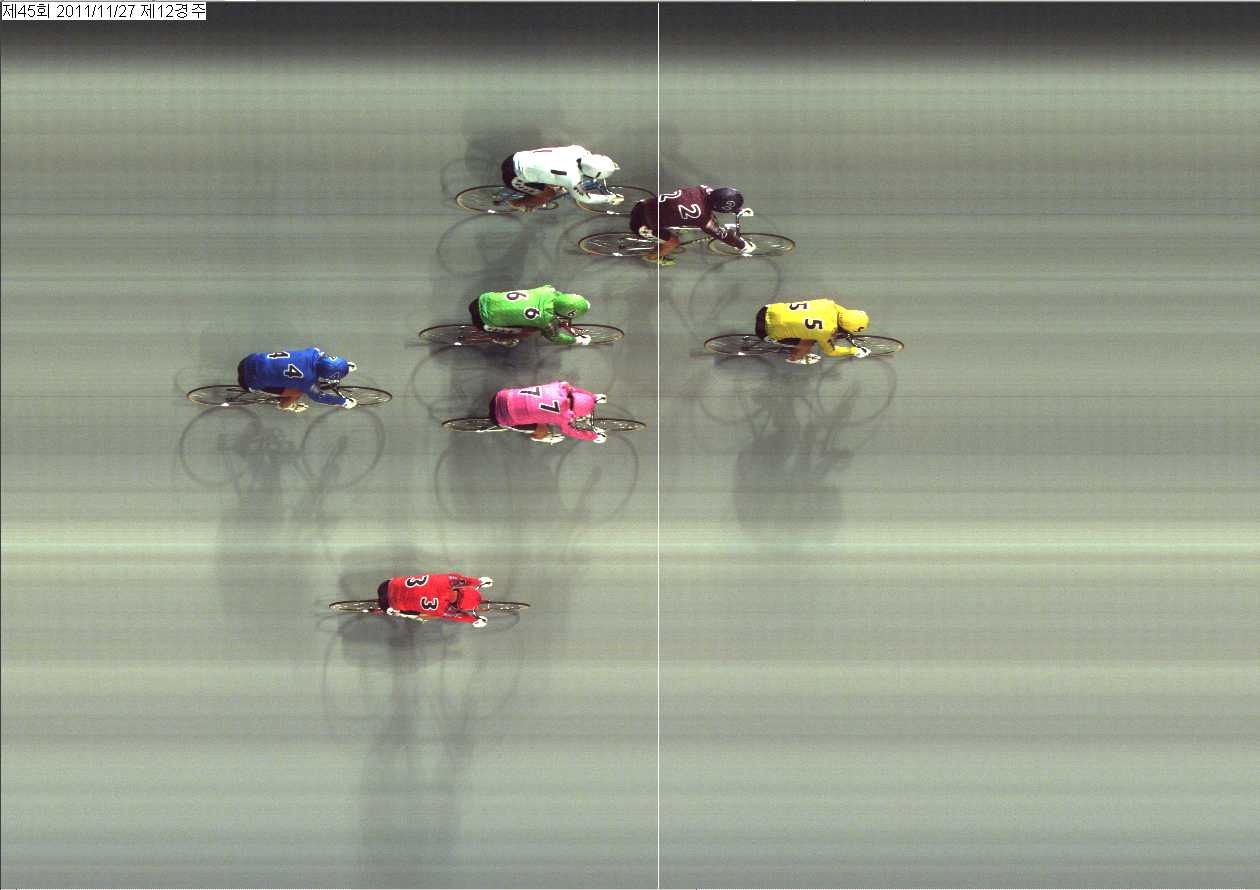 제45회차 3일째 12경주(2011년 11월 27일)에서 3위 최항진[1번]선수와 4위 정주원[7번]선수가 1/8W(바퀴)차로 들어왔습니다 |