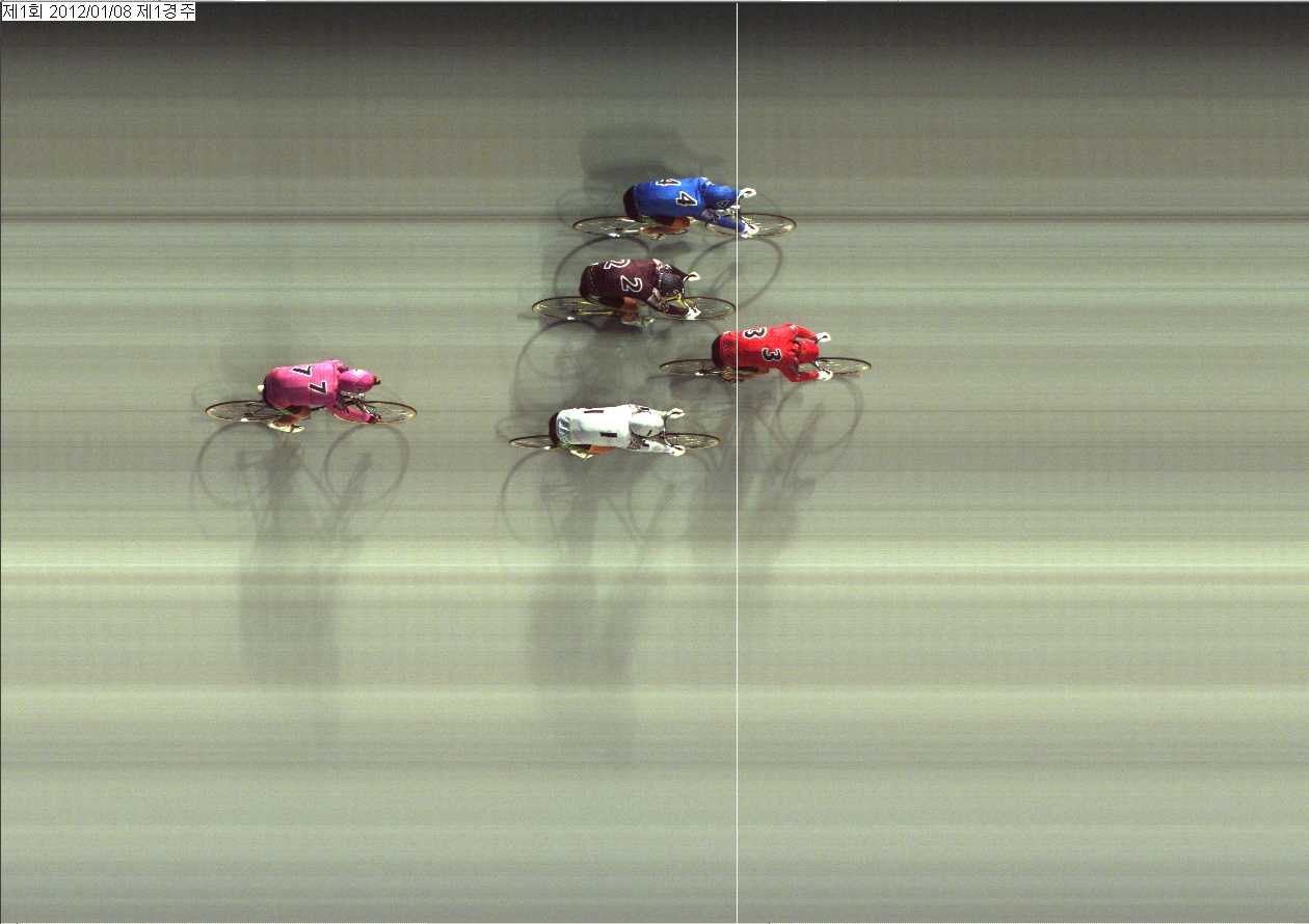 | 제1회차 3일째 1경주(2012년 1월 8일) 3위 착순판독사진 | |