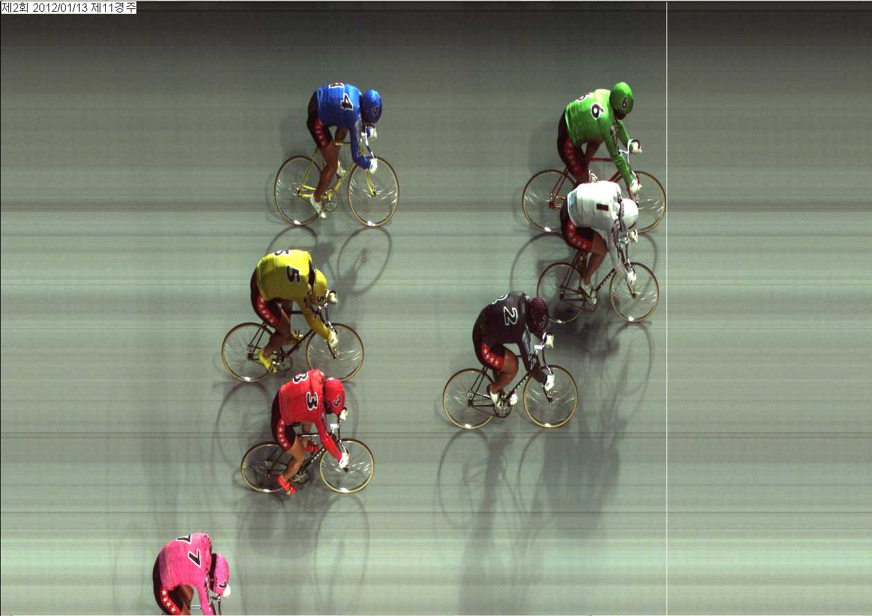 제2회차 1일째 11경주(2012년 1월 13일)에서 1위 황영근[6번]선수와 2위 이현구[1번]선수가 1/8W(바퀴)차로 들어왔습니다 |