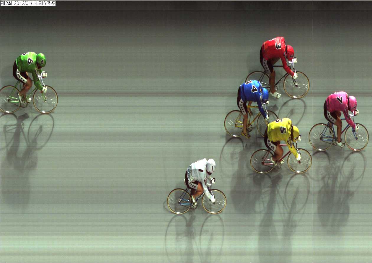 | 제2회차 2일째 6경주(2012년 1월 14일) 2위 착순판독사진 | |