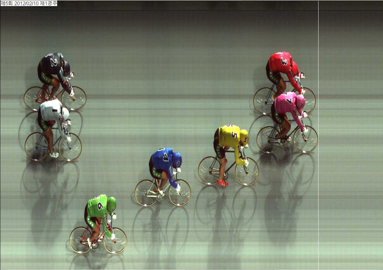 | 제5회차 1일째 1경주(2012년 2월 10일) 1위 착순판독사진 | |