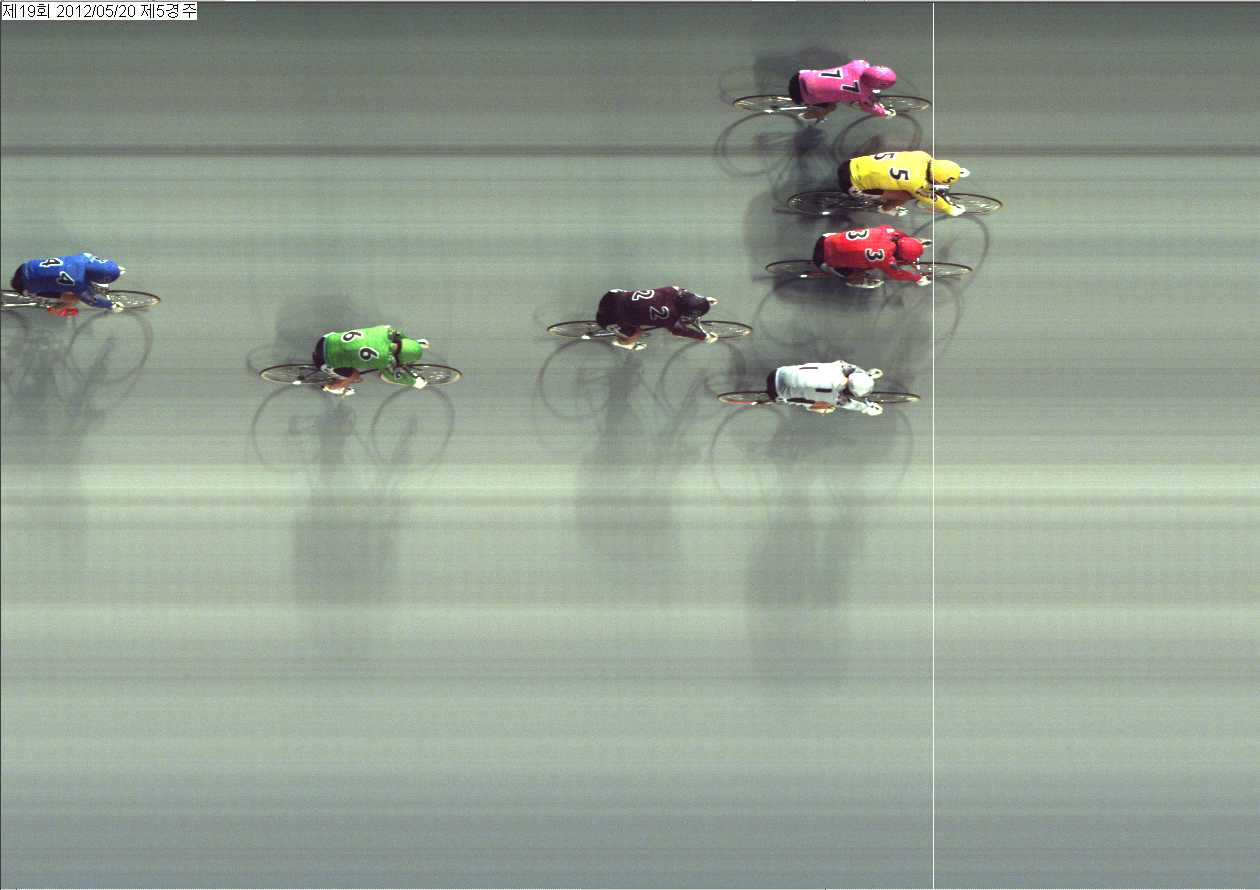 제19회차 3일째 5경주(2012년 5월 20일)에서 3위 허현[7번]선수와 4위 김정우[1번]선수가 1/8W(바퀴)차로 들어왔습니다 |