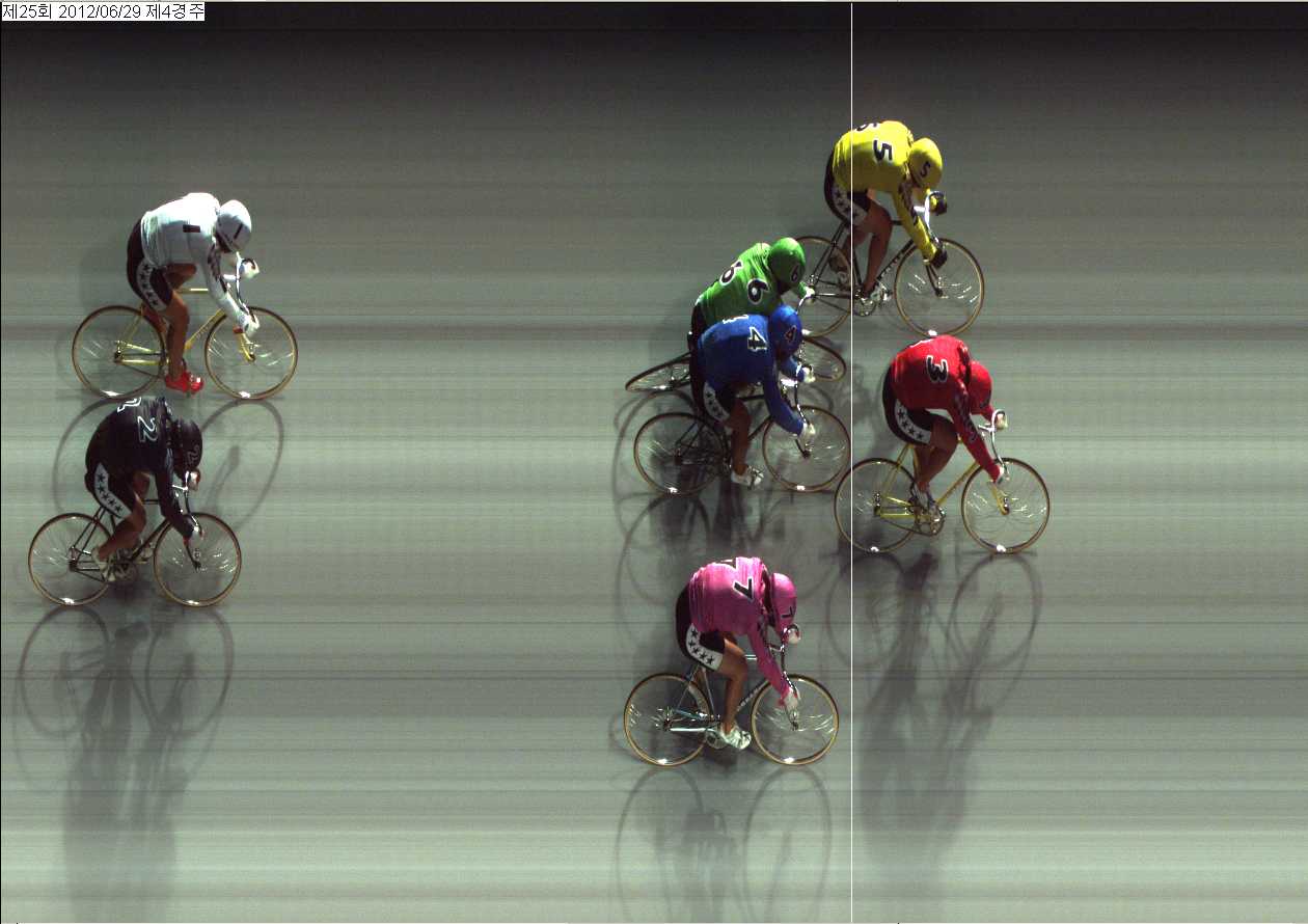 | 제25회차 1일째 4경주(2012년 6월 29일) 3위 착순판정사진 | |