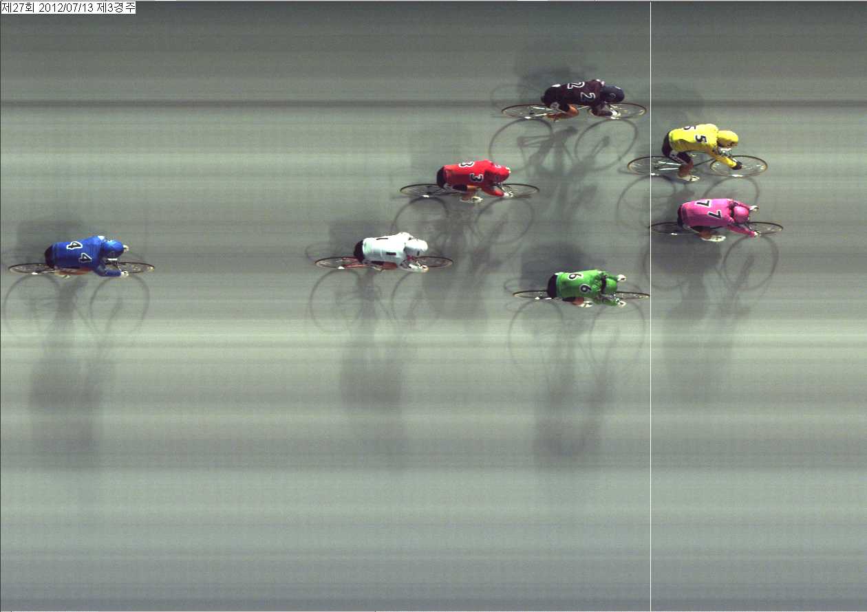 | 제27회차 1일째 3경주(2012년 7월 13일) 3위 착순판정사진 | |